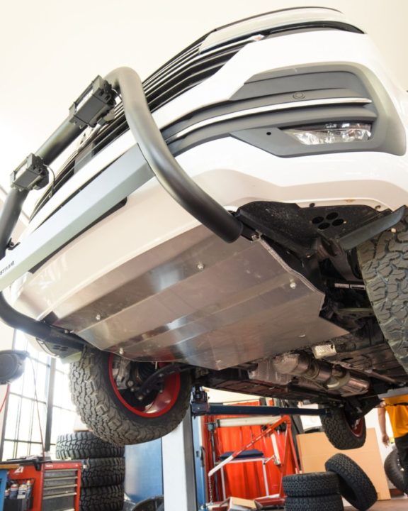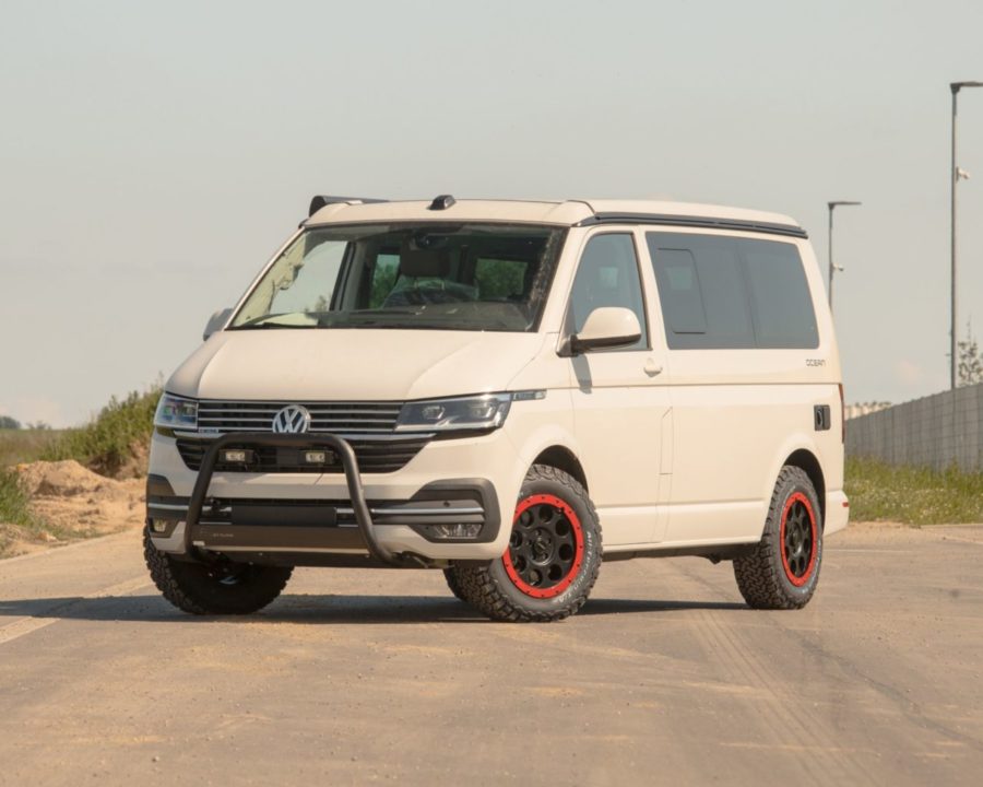 I na koniec najlepsza wiadomość; ta wysokiej klasy konwersja terenowa jest również możliwa dla T6 i T6.1 bez wyposażenia California i bez napędu na cztery koła. Jeżeli chcemy podkręcić dźwięk silnika to można również zamówić sportowy układ wydechowy (900 Euro), ale tę opcję odradzam. Kamper to spokój – cichy i seryjny układ wydechowy jest mniej męczący i łatwiejszy do serwisowania.