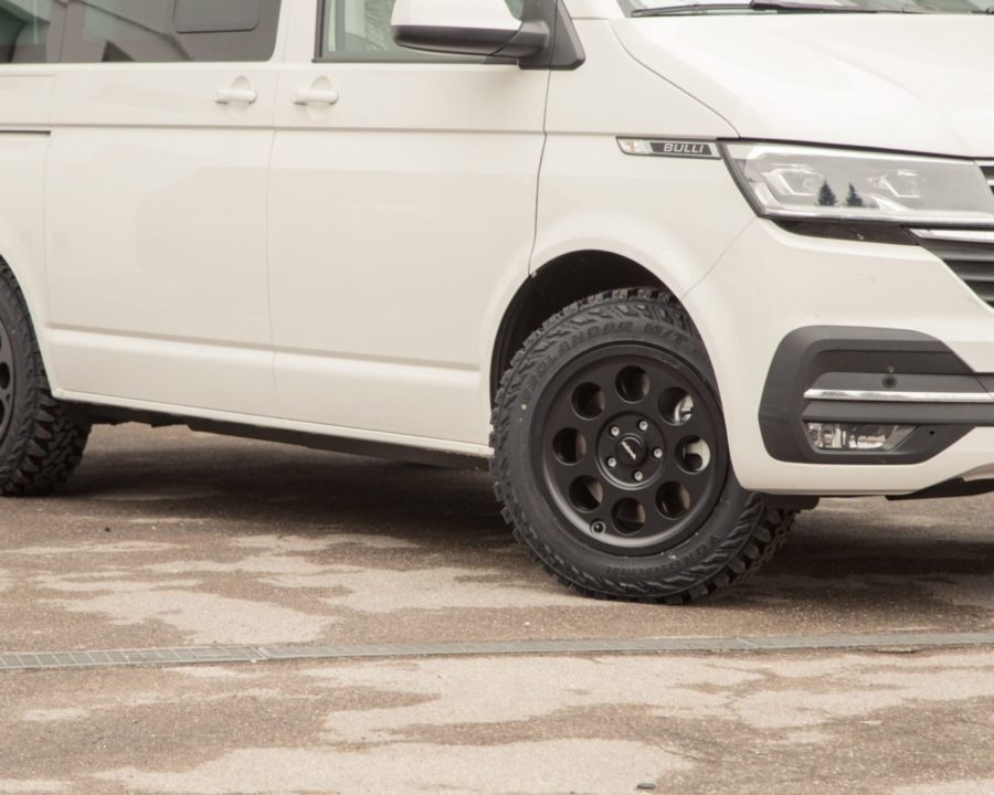 Aby zabrać busa VW w błoto i wziąć udział w przygodzie biwakowania w terenie, zespół delta4x4 stworzył pakiet do samochodów T6 / T6.1. Prezentujemy zestaw do podnoszenia nadwozia Seikel z dostrojonymi amortyzatorami Bilstein na przednią i tylną oś (od 1900 Euro), co podnosi furgonetkę o 30 mm. Lepszy prześwit zapewniają opony delta4x4 AllTerrain 255/55R18 i wytrzymałe, przetestowane w rajdach felgi aluminiowe Classic B (cena za zestaw od 3400 Euro).
