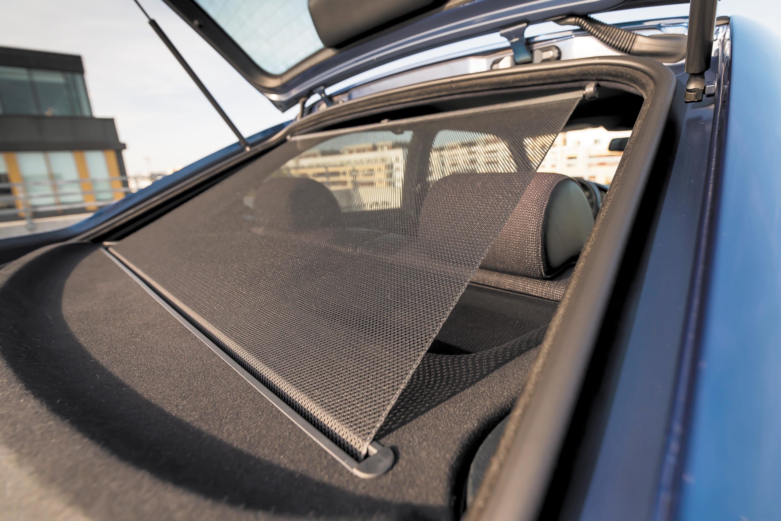 Rozpórka kielichów sygnowana jest logo firmy Wiechers. To niesłychanie rzadko spotykane akcesorium do wersji 323ti. Rozpórka tej samej firmy znalazła się także w bagażniku, który ponadto jest wyposażony w praktyczną siatkę przytrzymującą umieszczone w nim przedmioty i przymocowaną do tylnej szyby roletę. To kolejny rzadki element w przypadku opisywanej wersji.
