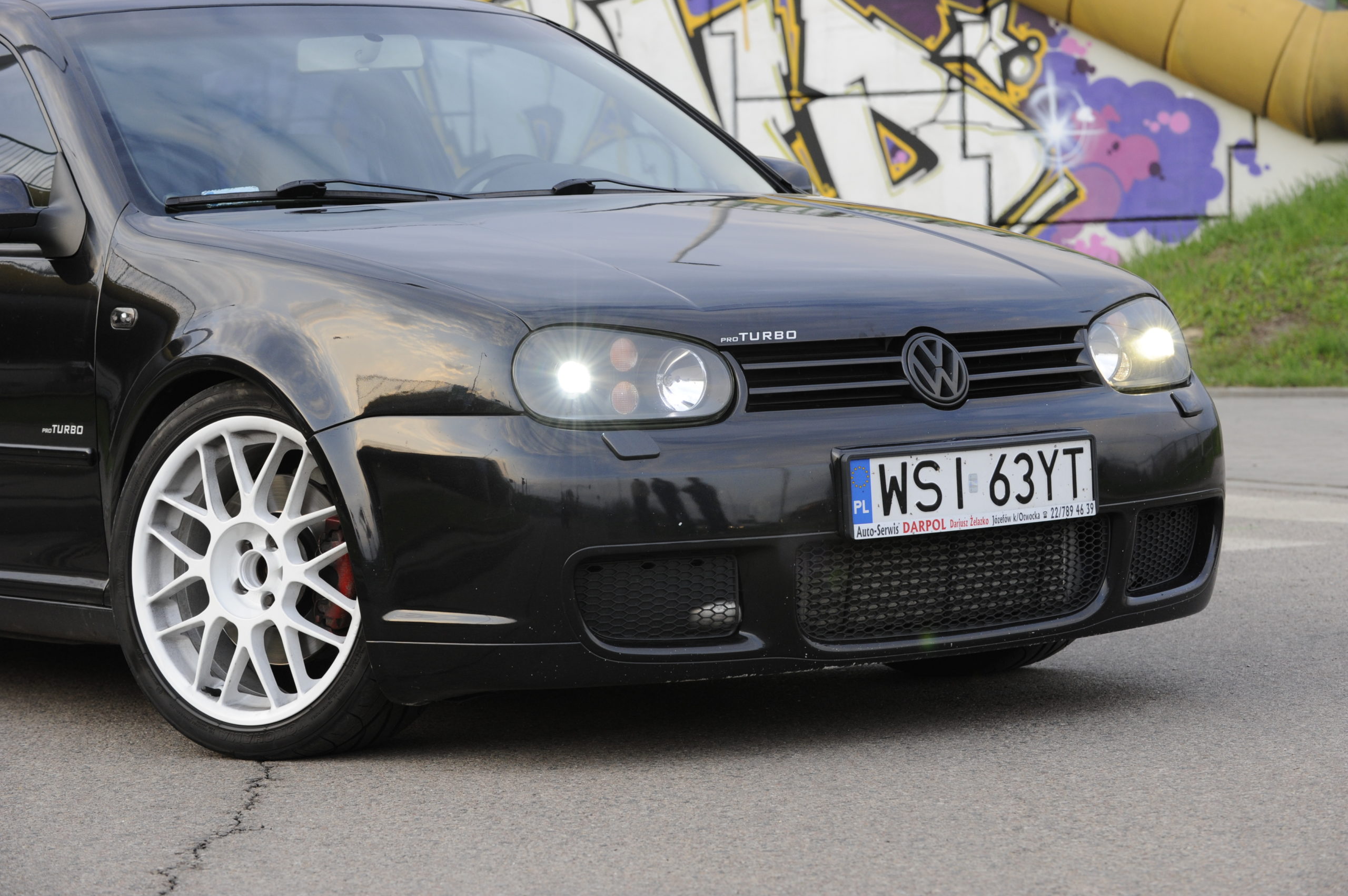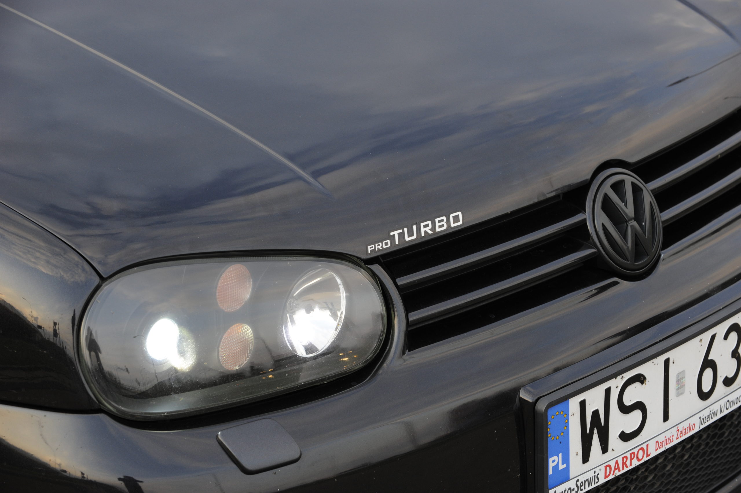 NADWOZIE: zderzaki od Golfa R32, reflektory ze środkami pomalowanymi na czarno i światłami ksenonowymi z R32, emblematy VW zmienione na czarne, reszta usunięta, przyciemnione szyby.