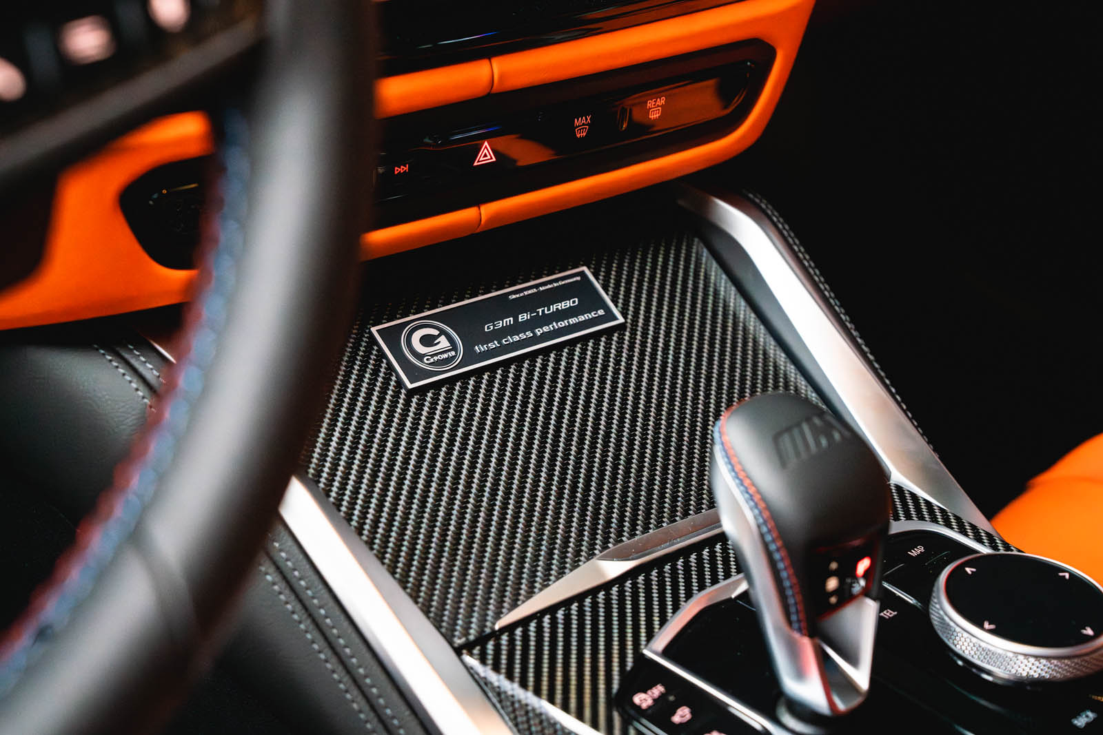 Na koniec, ale nie mniej ważne, drobne detale wnętrza: znaczek G3M Bi-TURBO i dywaniki G3M Bi-TURBO wykonane z najwyższej jakości weluru. Inne dostępne na życzenie opcjonalne dodatki obejmują także kierownicę G-POWER z włókna węglowego LED.