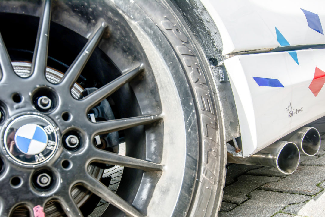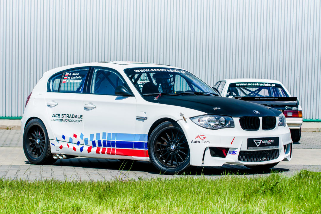 Nadwozie zostało poszerzone i wzbogacone o elementy z modelu 1M. Podobnie jak w przypadku trzech wcześniej opisywanych aut, w jedynce zainstalowano bezpieczny bak paliwa, kubełkowe fotele, sportową kierownicę oraz sportowe pasy bezpieczeństwa. Samochód ma bardzo rozbudowaną klatkę bezpieczeństwa, wydech El-Tec, zawieszenie BC Racing oraz zewnętrzny wyłącznik prądu wraz z systemem gaśniczym. Na tylnej osi pojawiła się szpera z M3 E46. Tak skompletowana seria 1 posiada homologację wyścigową oraz rajdową.