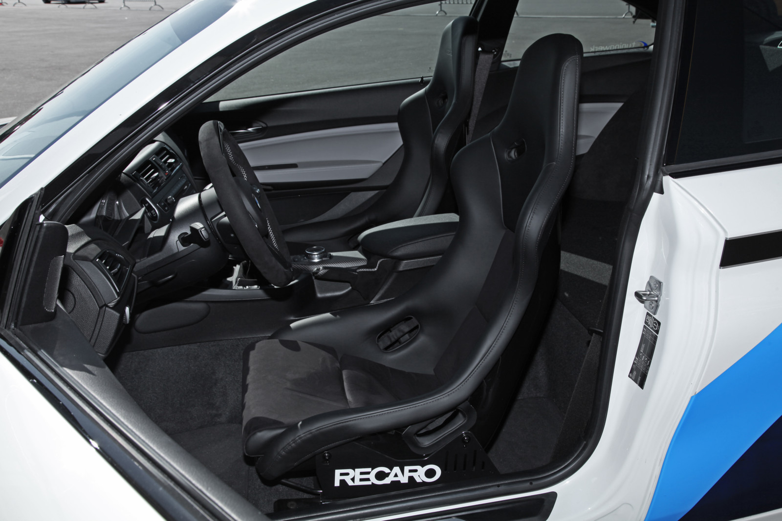 Miejsce fabrycznych foteli zajęły kubełki Recaro PolePosition. Warto dodać, że siedzenia mają szyny do regulacji położenia. Wyczynowe fotele są zwykle mocowane na sztywno – do ich regulacji są potrzebne narzędzia. Dążąc do obniżenia masy, Tuningwerk usunęło tylną kanapę. Przestrzeń po niej została wyłożona materiałem. Kto chce pójść krok dalej, może zamówić opcjonalną półklatkę bezpieczeństwa. Jej zastrzały pozwolą na montaż 6-punktowych pasów bezpieczeństwa.