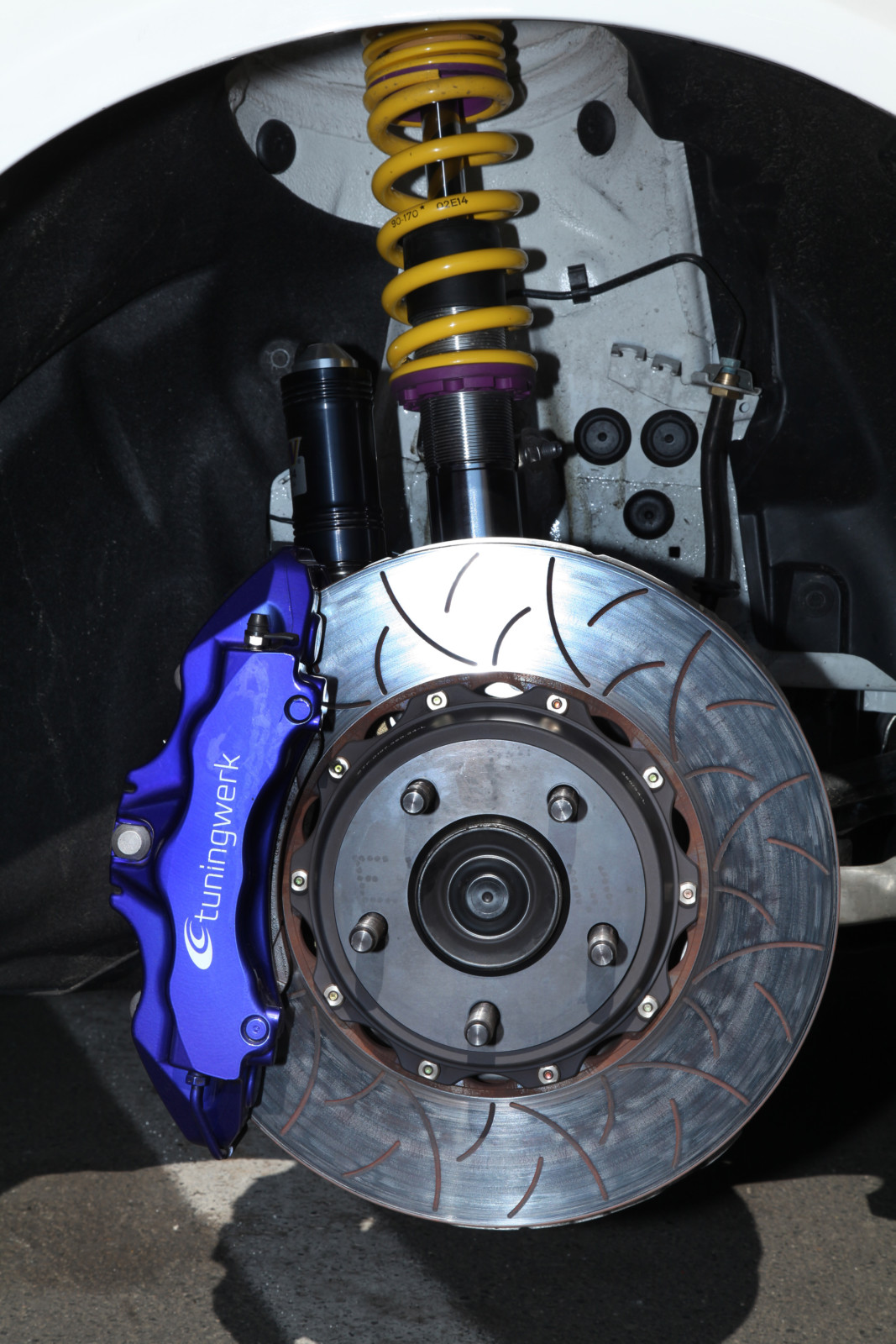 Jazda po torze wystawia na ciężką próbę także układ hamulcowy. Tuningwerk zdecydowało się na podniesienie jego wydajności. Na przednią oś zamontowano 350-milimetrowe tarcze oraz 6-tłoczkowe zaciski Brembo, z tyłu zaś elementy z katalogu BMW Performance. Aby ułatwić dozowanie siły hamowania, standardowe przewody zastąpiono odpowiednikami w stalowym oplocie. Ponadto zmieniono sterowniki systemów ABS i DSC, co pozwoliło na pełne wykorzystanie możliwości wzmocnionych hamulców.