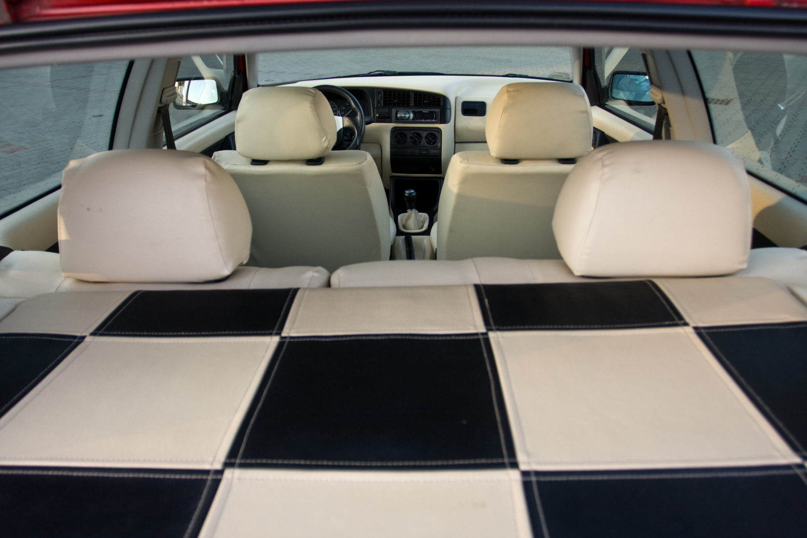 Równolegle z modyfikacją nadwozia wprowadzał zmiany we wnętrzu. Przede wszystkim zamontował siedzenia i kanapę z modelu VR6 pokryte jasną tapicerką.