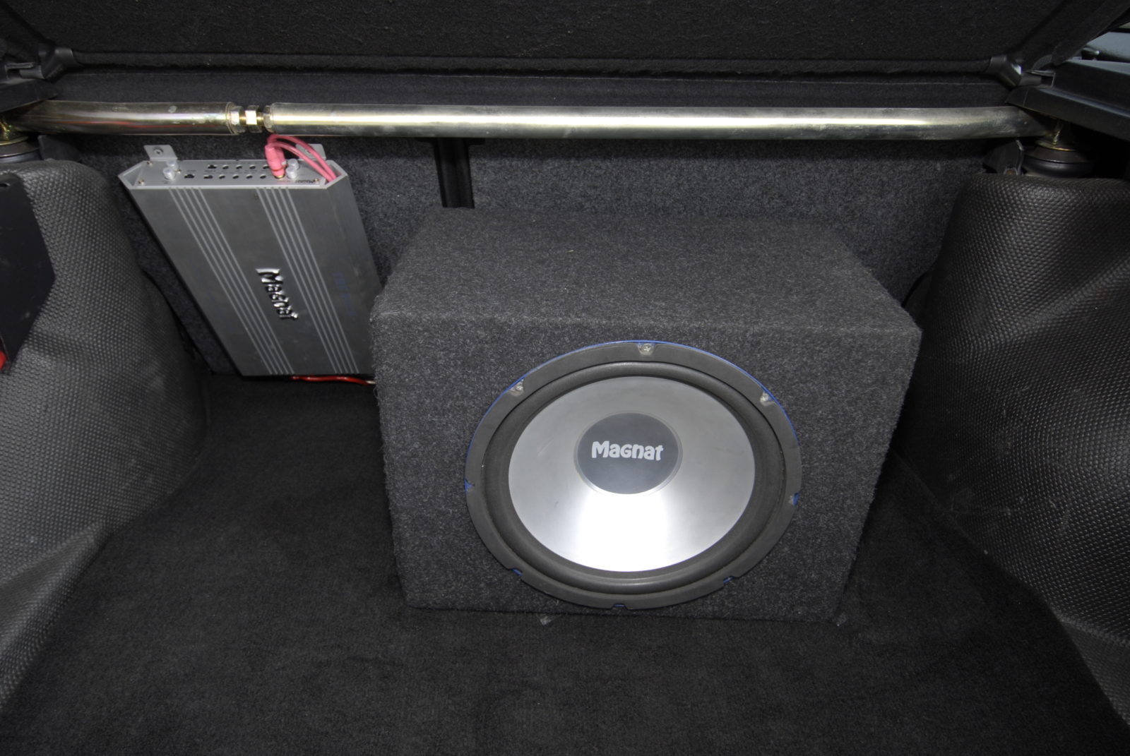 Poprawek wymagał system audio. Standardowy ledwie potrafił wydusić z siebie ostatnie dźwięki, dlatego zamiast niego zainstalowano zestaw oparty na podzespołach Magnata. W bagażniku umieszczono 4-kanałowy wzmacniacz zasilający dwudrożny system głośników ułożonych w drzwiach przednich. Potężna skrzynia basowa zajęła połowę przedziału bagażowego za tylną kanapą. Nad barwą i czystym brzmieniem dźwięku czuwa radioodtwarzacz marki Kenwood.
