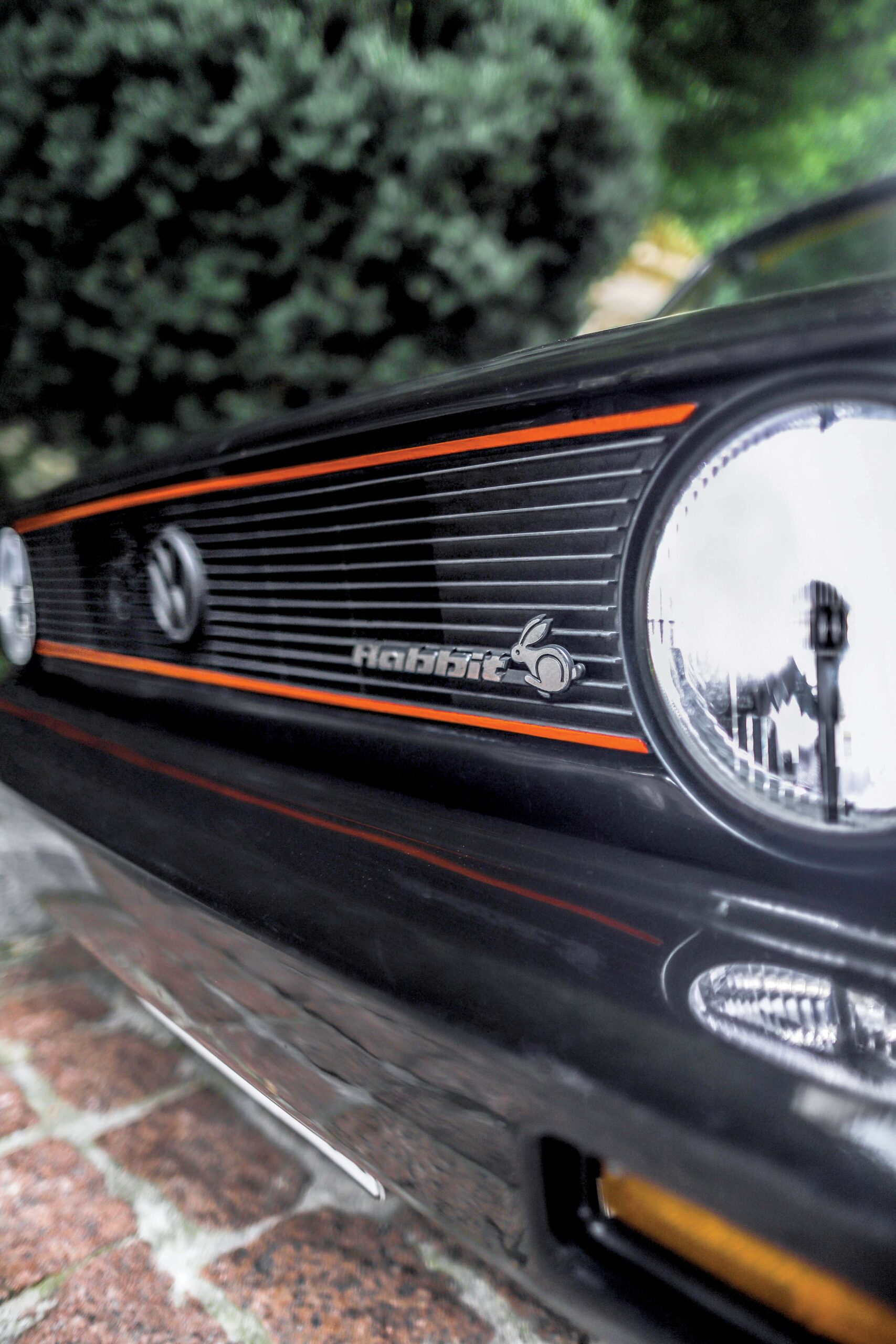 Warto wspomnieć też o lampach. Z przodu są to krzyże Wessem, a z tyłu Hella Post. Uwagę zwraca delikatna czerwona ramka wokół grilla i chromowany znaczek Rabbit.