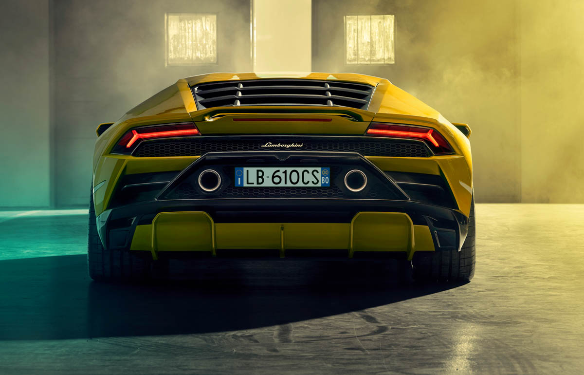 Lamborghini przedstawia Huracána EVO RWD. Maszyna ma 610 KM (449 kW) mocy przy 8000 obr / min i 560 Nm momentu obrotowego przy 6500 obr / min, ale więcej koni mechanicznych trafia na koła, ponieważ napęd na przednią oś stawia mniejsze opory. Lamborghini waży zaledwie 1389 kg, co daje stosunek masy do mocy 2,28 kg / KM. Rozkład ciężaru przód / tył wynosi 40/60. Huracán EVO RWD ma prędkość maksymalną 325 km/h i przyspiesza od 0 do 100 km/h w 3,3 sekundy. Huracán EVO RWD nie koncentruje się na prędkościach i rekordach okrążeń: to samochód dla kierowcy i przyjemności z jazdy.