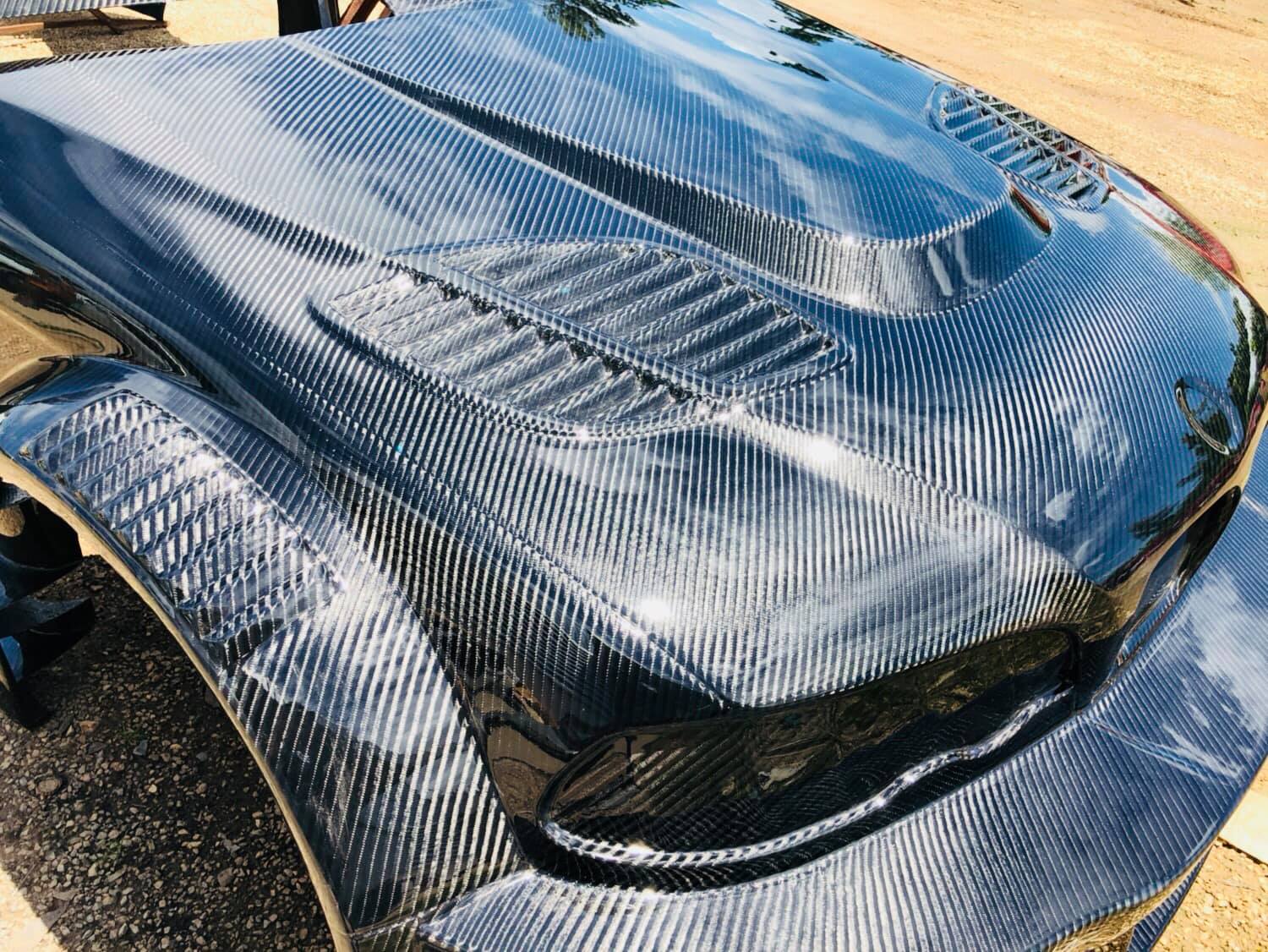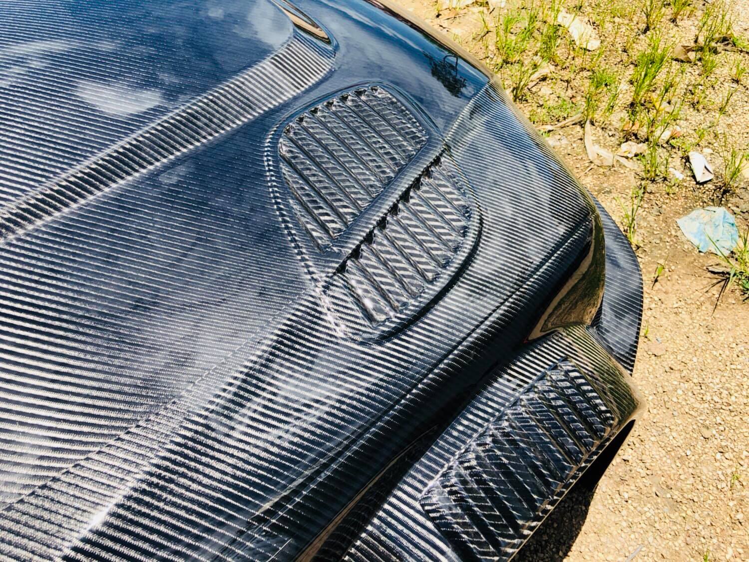 Super full carbon, bo tak nazywa się ta konwersja nadwozia zawiera progi, słupki A, B, C i dach. W komplecie są cztery błotniki z poszerzeniami (a’la GT3), zderzaki i maska z wlotami oraz garbem w stylu racing. Na zdjęciach nie ma drzwi i klapy bagażnika, ale z pewnością również i te elementy zostaną wykonane. Sklep podaje, że całość waży….30 KG. Kto z Was podjąłby się takiego projektu?