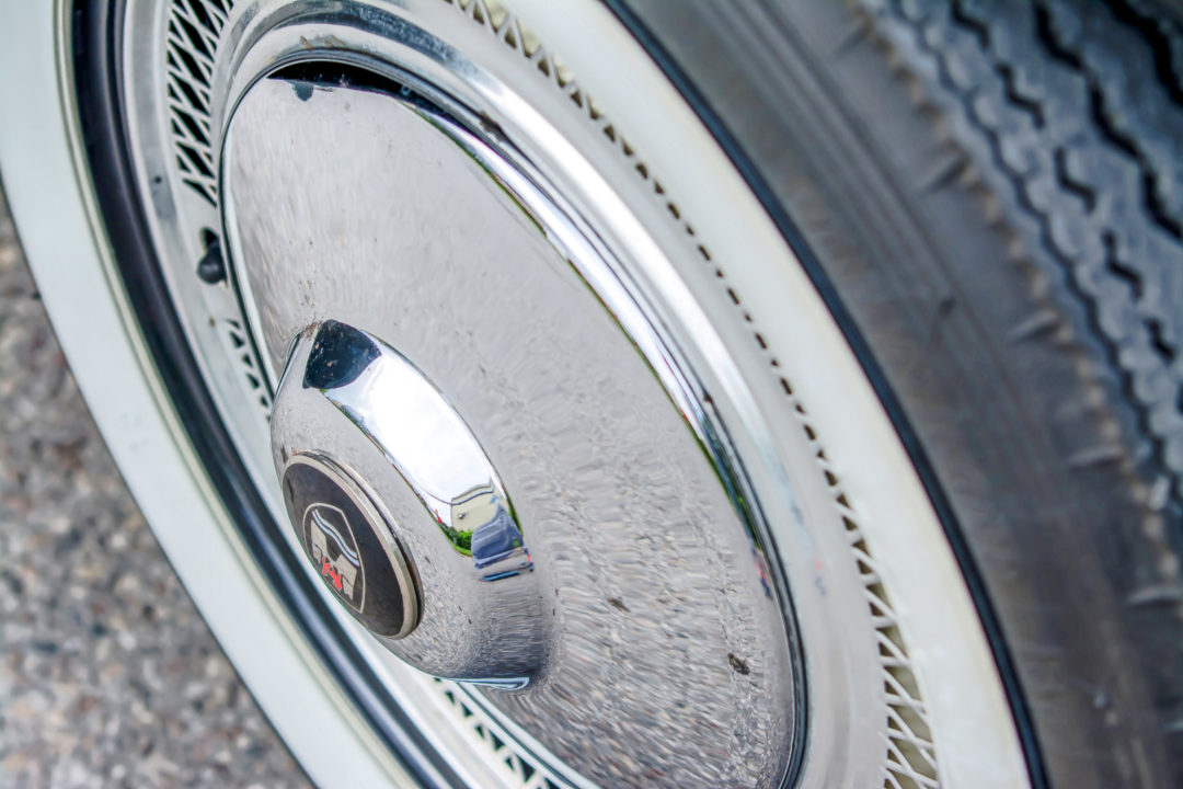 | oryginalne 15-calowe felgi, pomalowane na dwa kolory, ringi ozdobne VW wzór X, dekle Porsche 356, logo Wolfsburg, opony Dunlop 5.90 – 15, białe nakładki ATLAS |