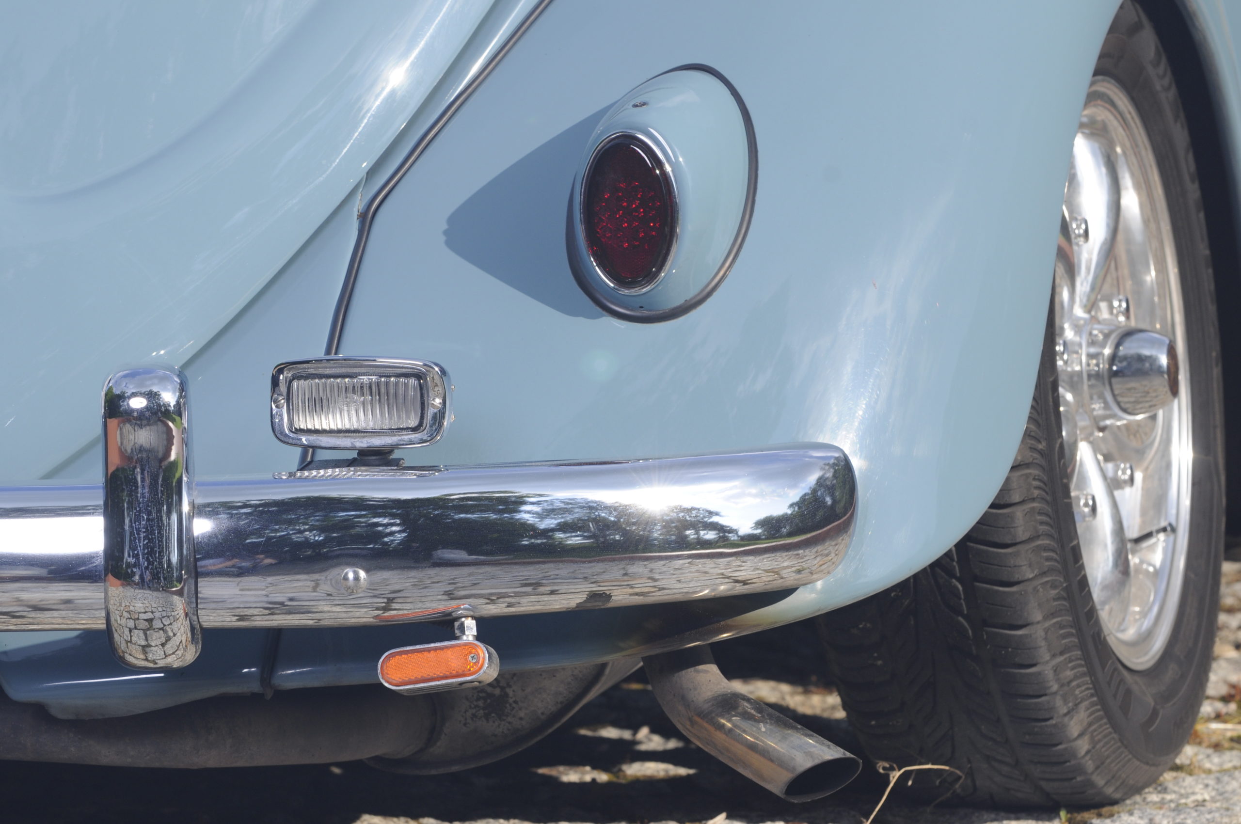 Następnie należało dobrać odpowiednie felgi. W przypadku tak zaawansowanego wiekowo auta mimo szerokiego asortymentu trudno wybrać coś bardziej właściwego niż 15-calowe polerowane obręcze Empi 5 Spoke. Cechą charakterystyczną większości samochodów z lat 60. była niezliczona ilość chromów, zatem powyższy zestaw pasuje tu jak ulał. Na koniec przebudowano układ wydechowy w systemie Hide Out.