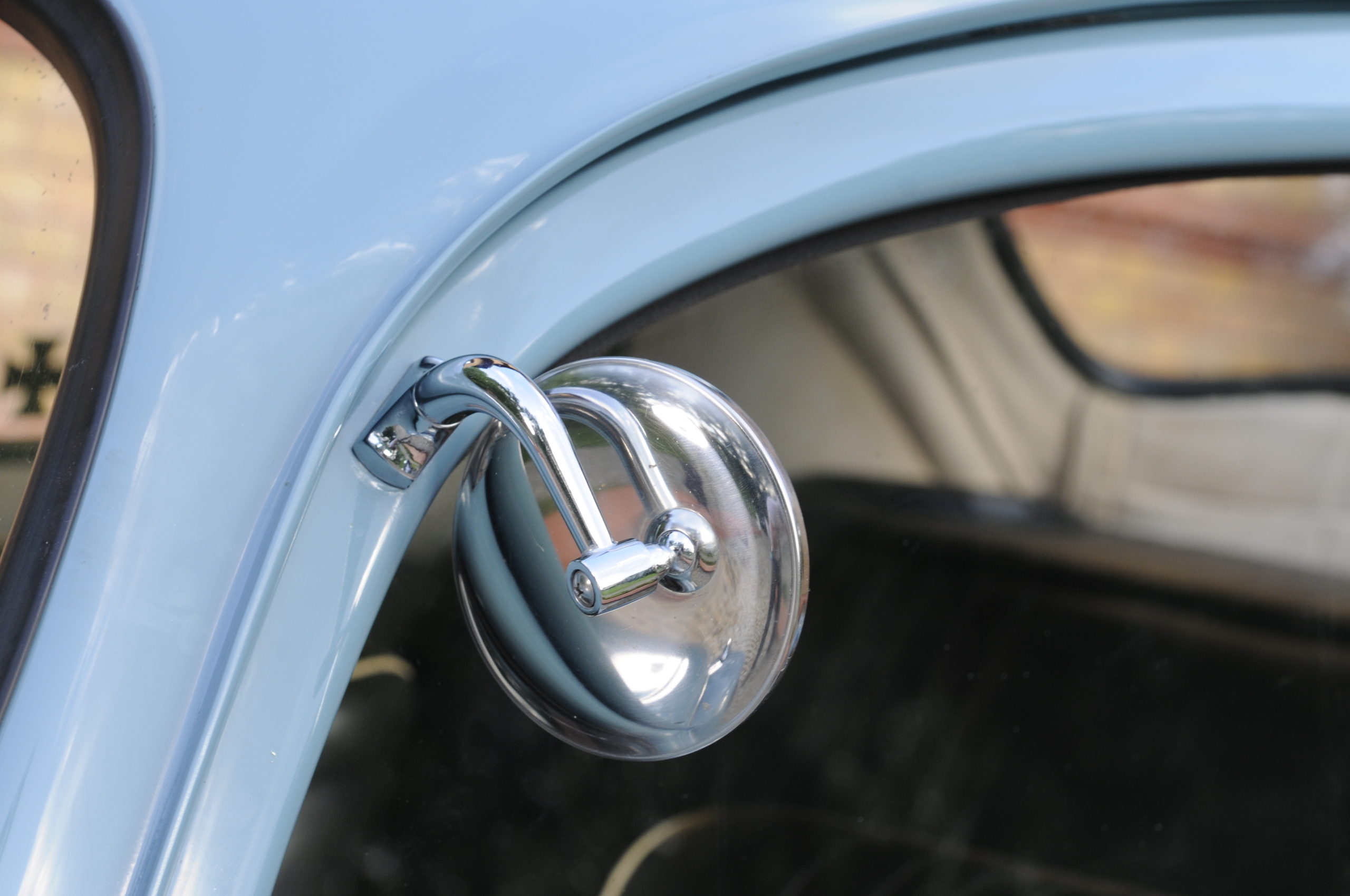 Nadwozie: gruntownie wyremontowane, wymieniona podłoga, faltdach z poszyciem materiałowym, nowy niebieski lakier, klapa silnika i wsteczne lampy od starszego modelu.