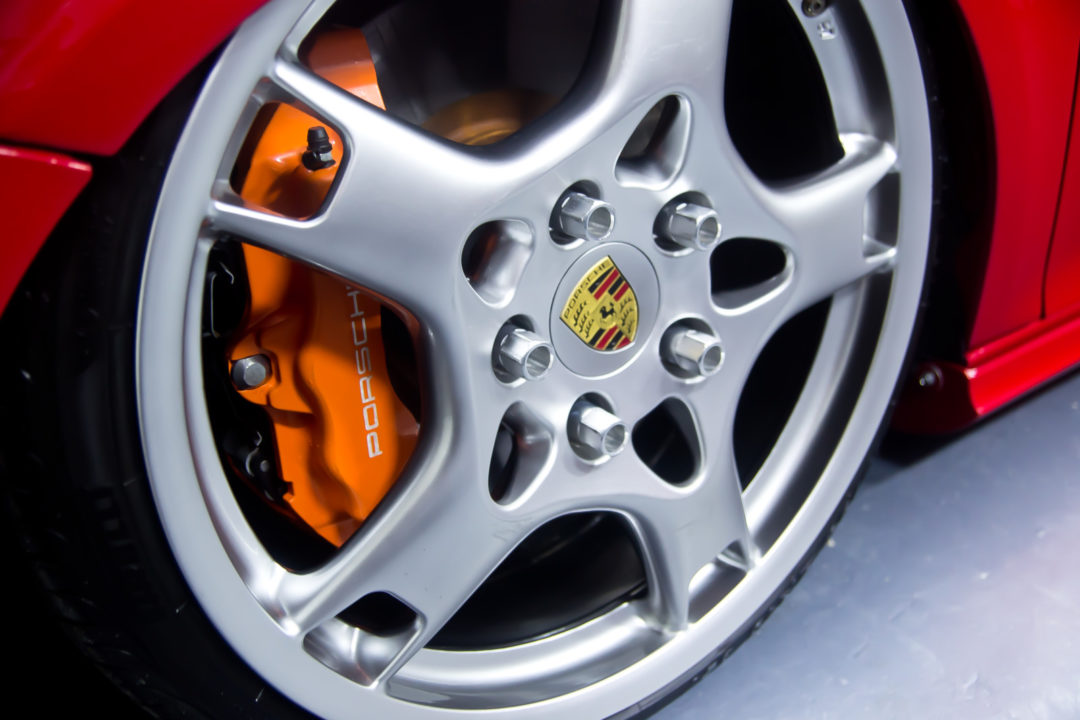 | BBS Porsche 911, przód: oryginalnie 8×19 przerobione na 19X9 z oponami 215/35 Pirelli P Zero, dystans 35 mm; tył: 19×11 z oponami 235/35 Pirelli P Zero, dystans 60 mm, szpilki + nakrętki blox „UK” |
