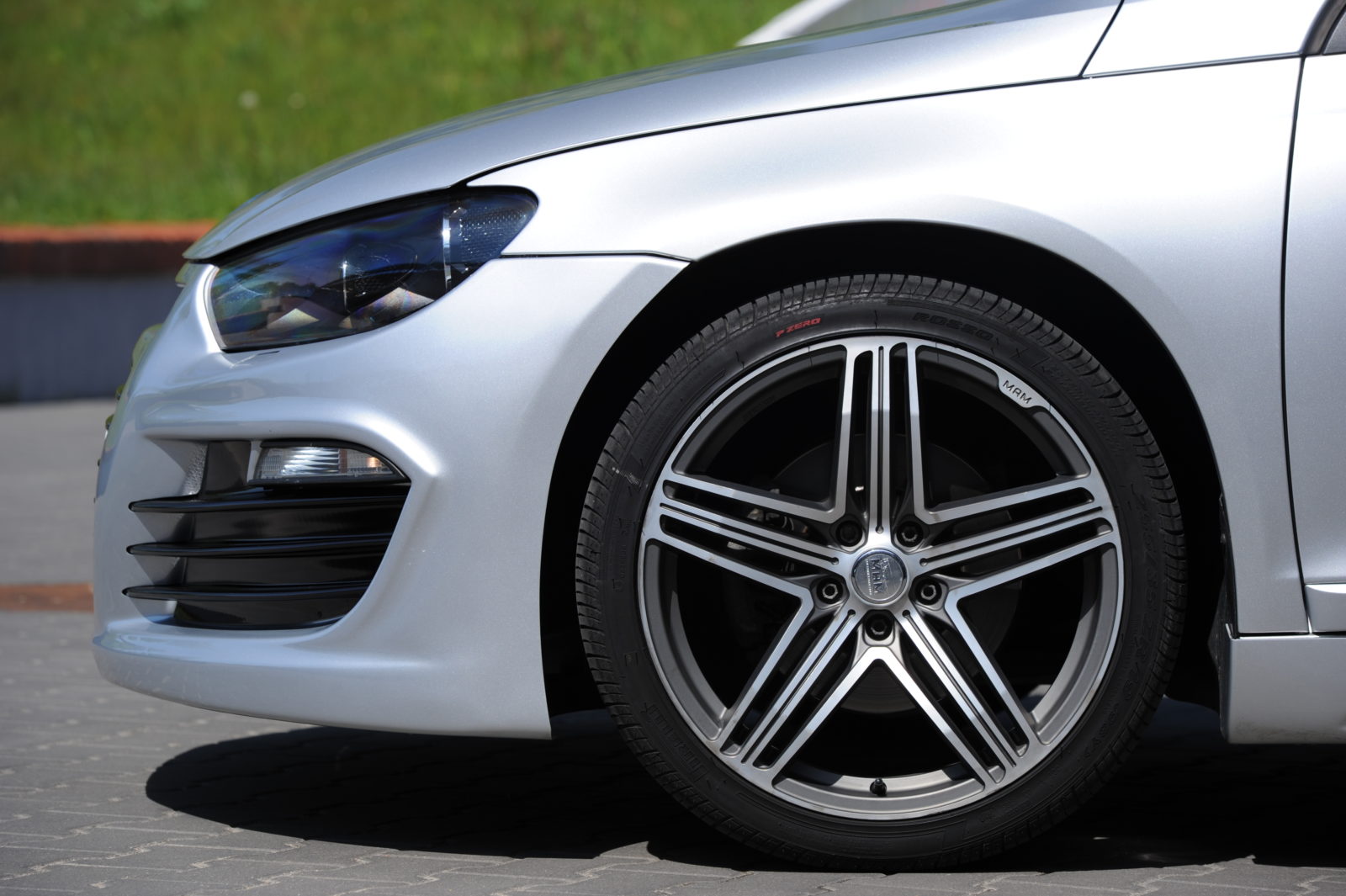 Jednak Kajetan nie zrezygnował ze swojego pomysłu. Na dwukolorowe koła MAM o szerokości 8,5 cala założono opony w rozmiarze 255/35. W celu lepszego ulokowania w nadkolach zamontowano gwintowany zestaw KW Variant 2 z regulacją twardości.
