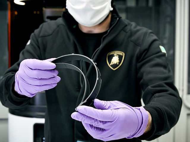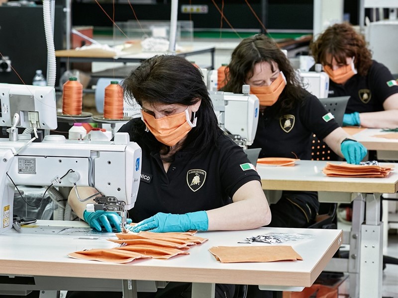 Automobili Lamborghini przekształca niektóre działy fabryki samochodów sportowych w Sant’Agata Bolognese na linie produkcyjne masek chirurgicznych i osłon ochronnych z pleksiglasu.