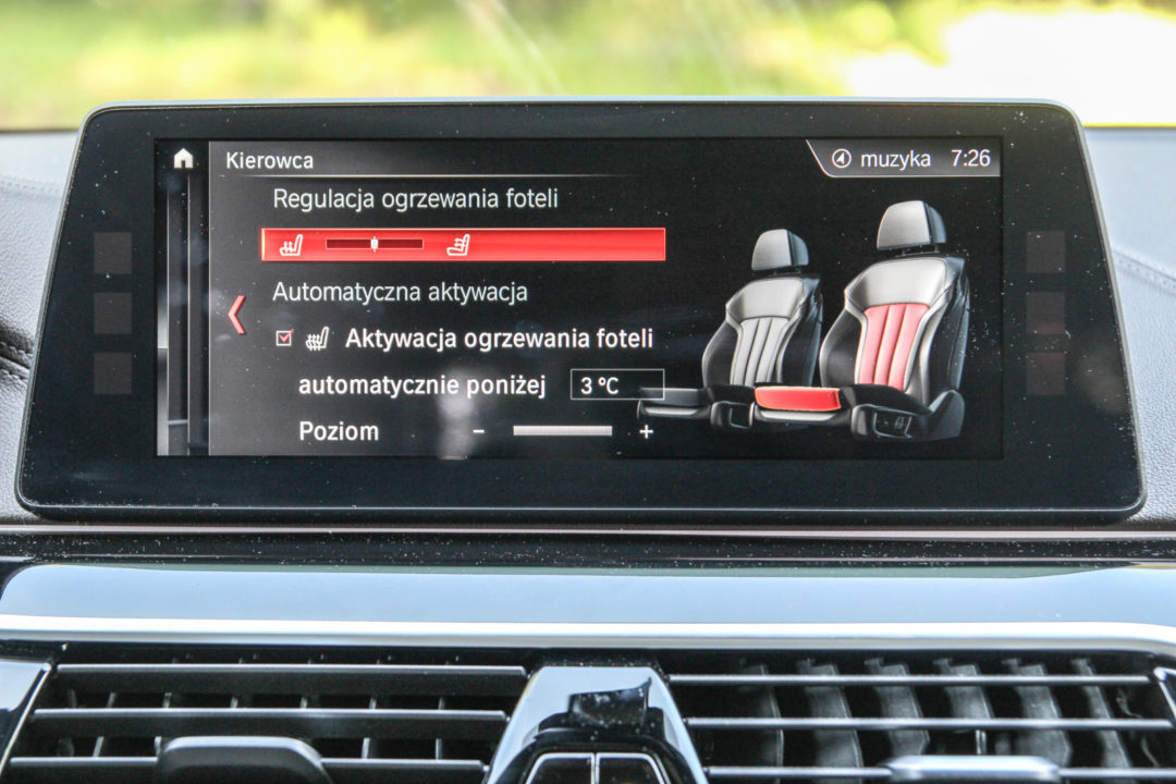 Dla najbardziej wymagających przygotowano 400-konne M5. Na jego konsoli środkowej znalazł się wyostrzający reakcję na gaz i ograniczający siłę wspomagania kierownicy przycisk Sport. Coś, co w momencie debiutu auta w 1998 r. uchodziło za szokująco nowoczesne rozwiązanie, dzisiaj nikogo nie dziwi. Na tunelu środkowym testowanego 540i znalazł się selektor trybów jazdy Eco Pro, Comfort, Sport i Sport Plus. Dla pierwszego i ostatniego z wymienionych dostępne są programy Individual, dzięki którym kierowca może według własnego uznania ustawić samochód – np. łącząc utwardzenie zawieszenia z oszczędną mapą silnika. W nieoferowanej już piątce F10 też było to możliwe, jednak brakowało możliwości szybkiego przełączania między programem domyślnym i indywidualnym. Na tym nie kończą się zmiany w systemie iDrive. W G30 rozpoznaje on kilka gestów, ma dotykowy ekran o wyższej rozdzielczości, konfigurowalne menu główne i wiele usprawnień z zakresu funkcjonalności. Zapoznanie się ze wszystkimi z nich może pochłonąć kilka godzin, ale warto to zrobić. System ma ogromne możliwości. Potrafi nawet aktywować podgrzewanie bądź wentylowanie foteli przy określonej przez kierowcę temperaturze.