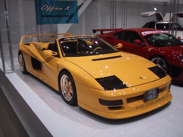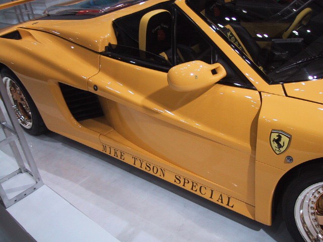 Nazywa się Ferrari Testarossa Competition Evolution Spider Mike Tyson Special. Samochód to turbodoładowana alteracja kultowej Testarossy zmodyfikowana przez niemieckiego tunera Koenig Specials. Samochód pochodzi z 1989 roku, został przerobiony na spider’a (kabriolet) i rzekomo legitymuje się mocą 1000 KM. Bolid został poszerzony, a charakterystyczne żebra na bokach ustąpiły miejsca ogromnym wlotom powietrza. Wnętrze zostało obszyte czarną i żółtą skórą, a na zagłówkach wyszyte zostały rękawice bokserskie. Tarcze zegarów są żółte, a licznik wyskalowany jest do 360 km/h. Z tyłu silnik został wyeksponowany pod przeźroczystą pokrywą i, co ważniejsze, otrzymał turbodoładowanie podnoszące moc o ponad 100%. Czy może być coś bardziej kultowego niż 1000-konne „custom Rarri”, które należało do samego czempiona Iron Mike’a Tyson’a?