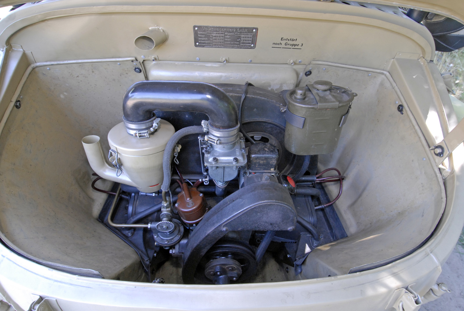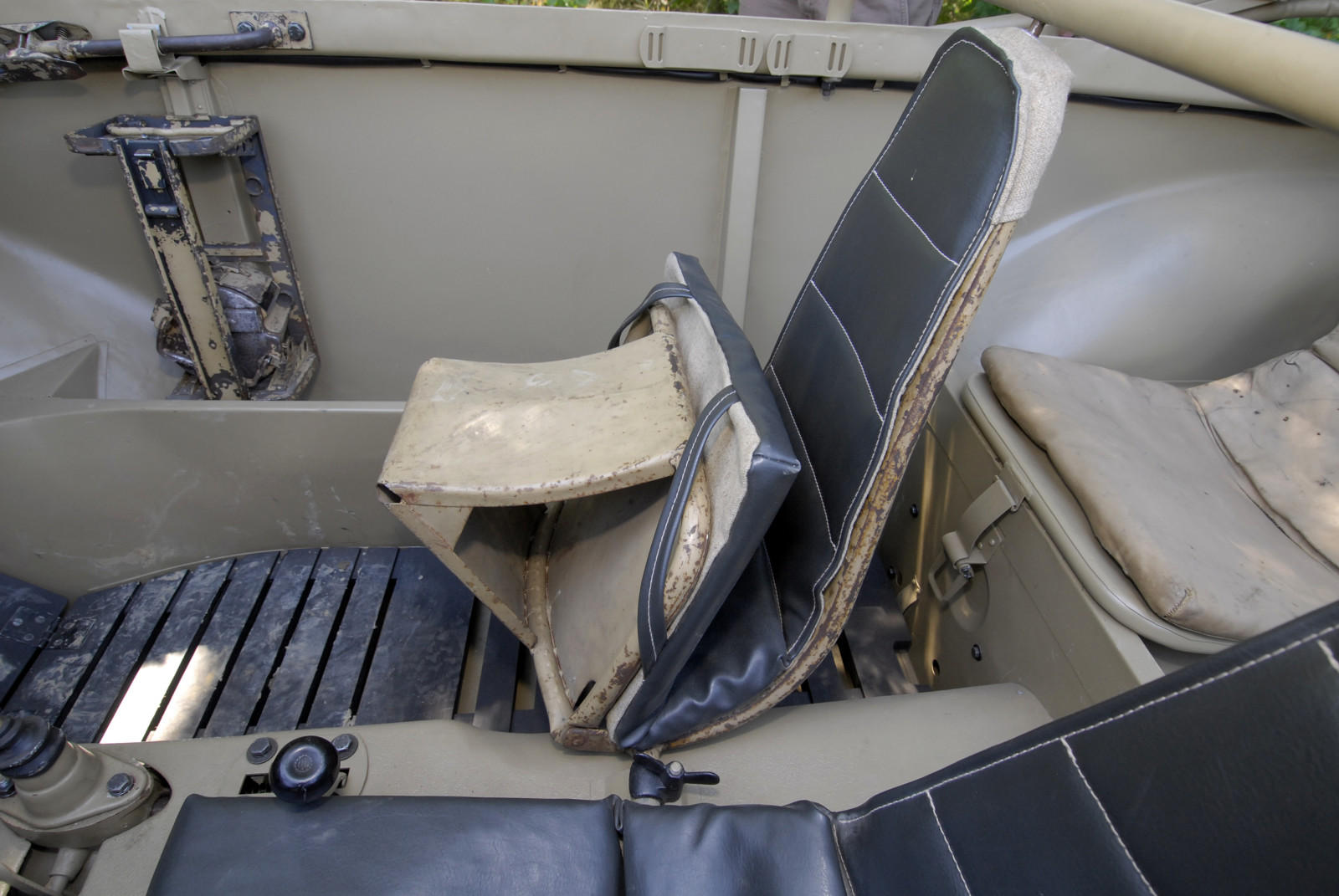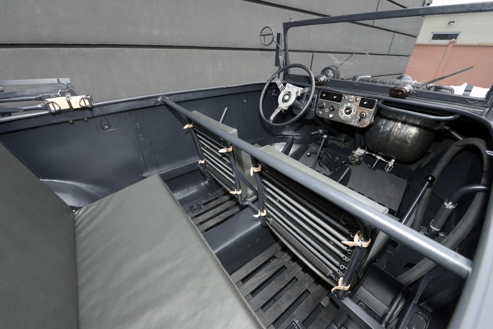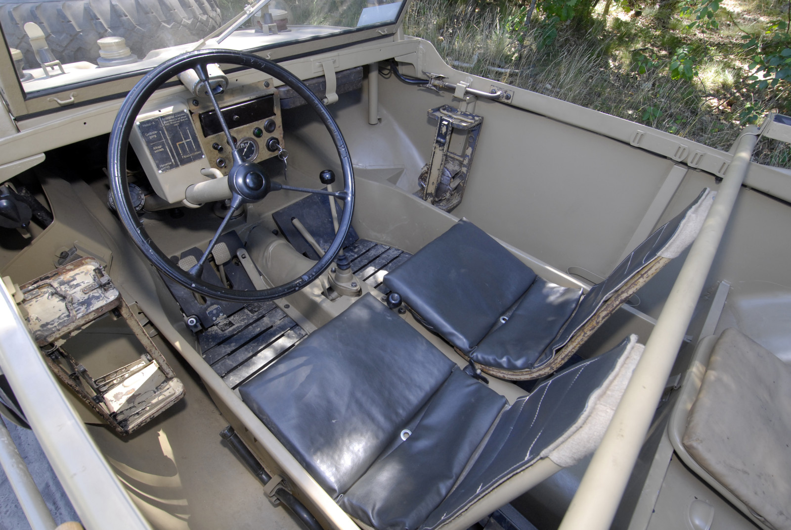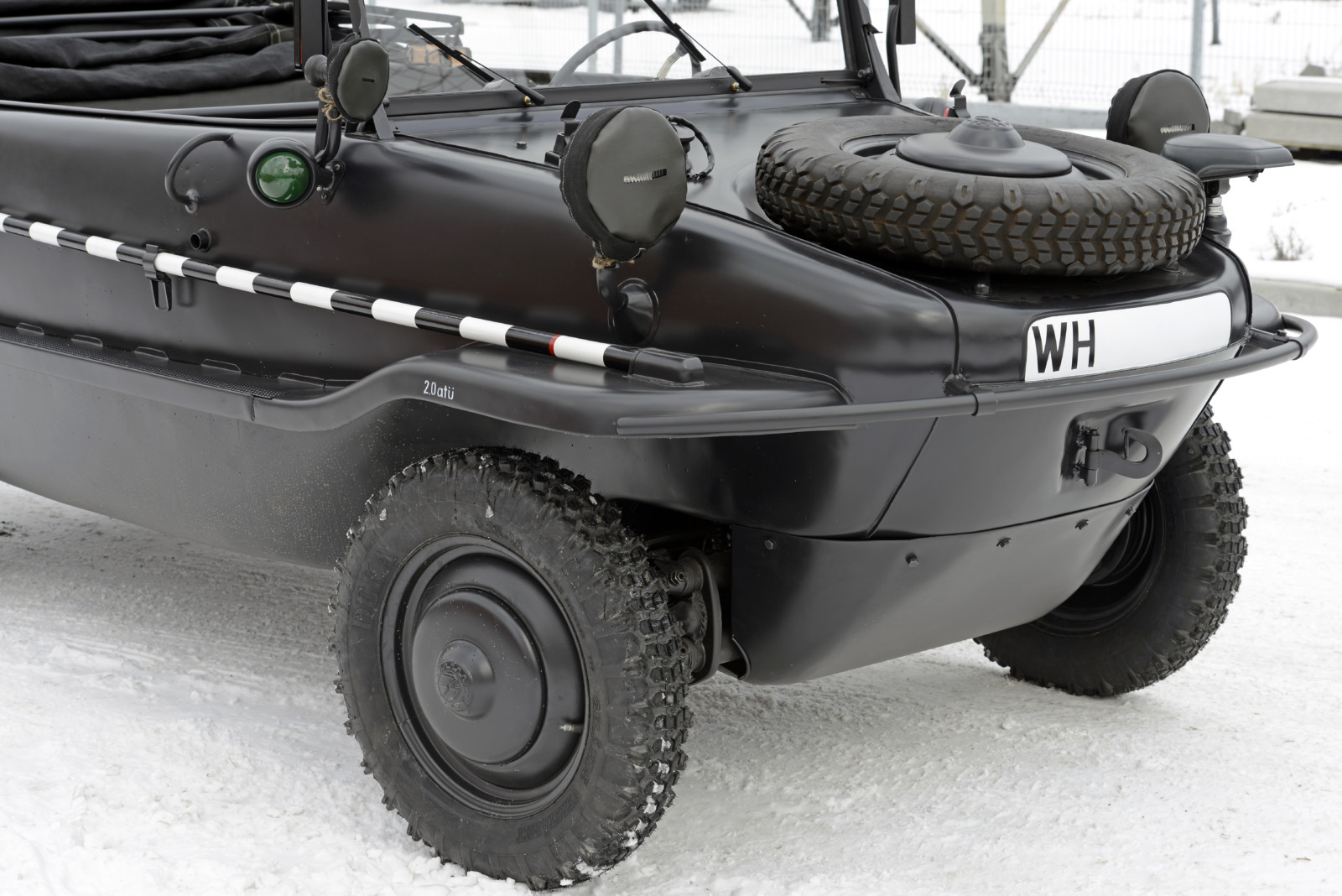 Ciemnoszare auto, które widzicie na zdjęciach, ma numer 19, pochodzi z pierwszej partii 30 prototypów Typ 128 z roku 1940. Druga widoczna na zdjęciach amfibia koloru piaskowego to Typ 166 po restauracji. Aut Typu 166 wyprodukowano podczas wojny ponad 14 tysięcy.