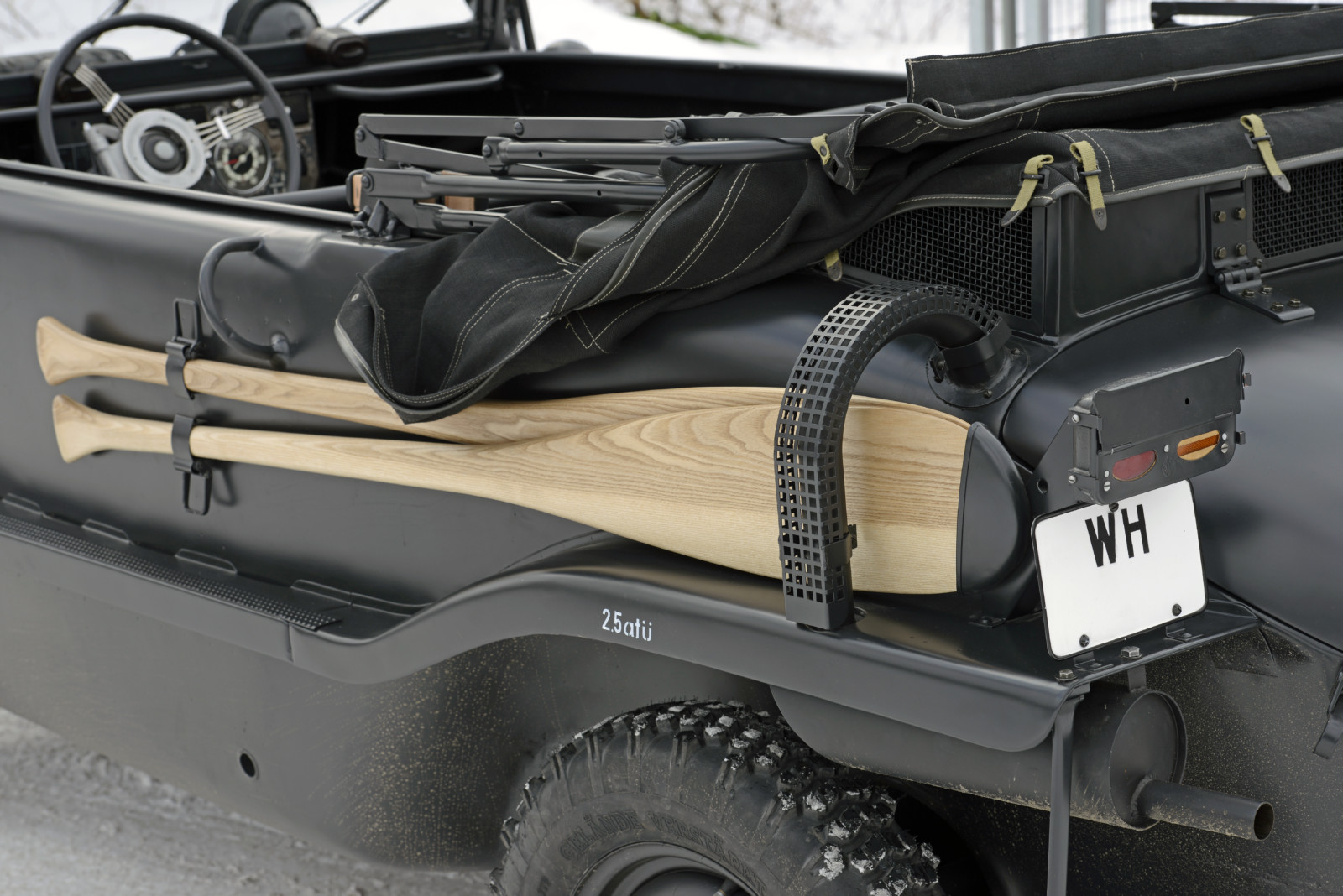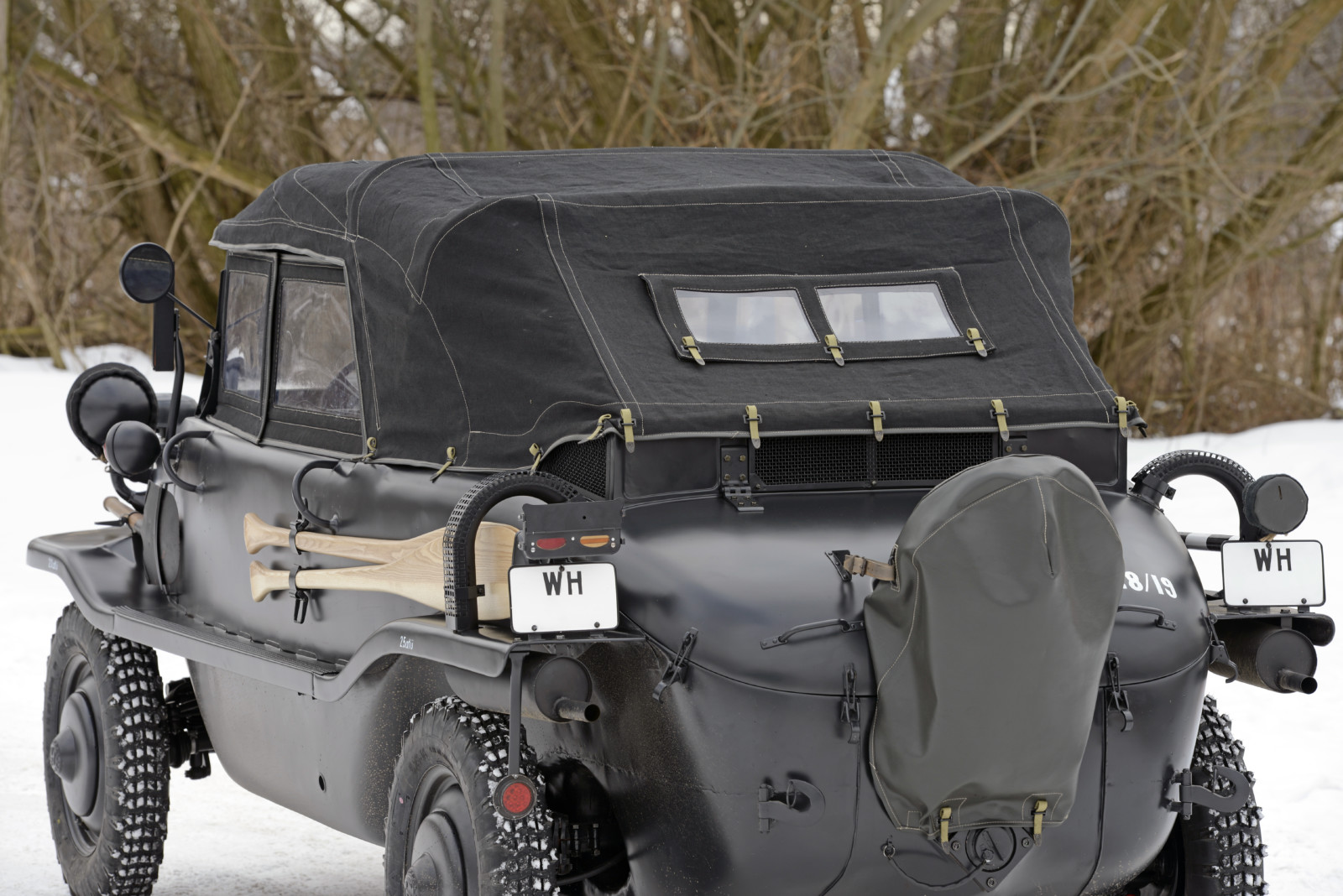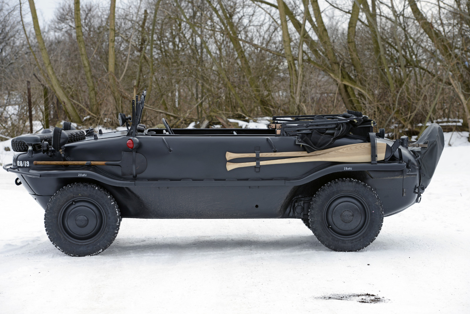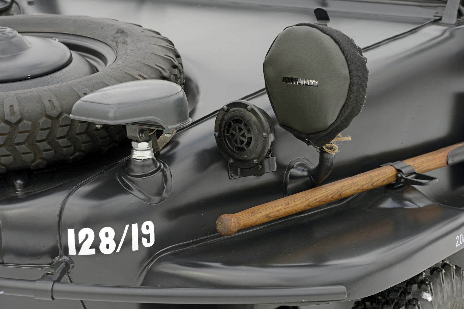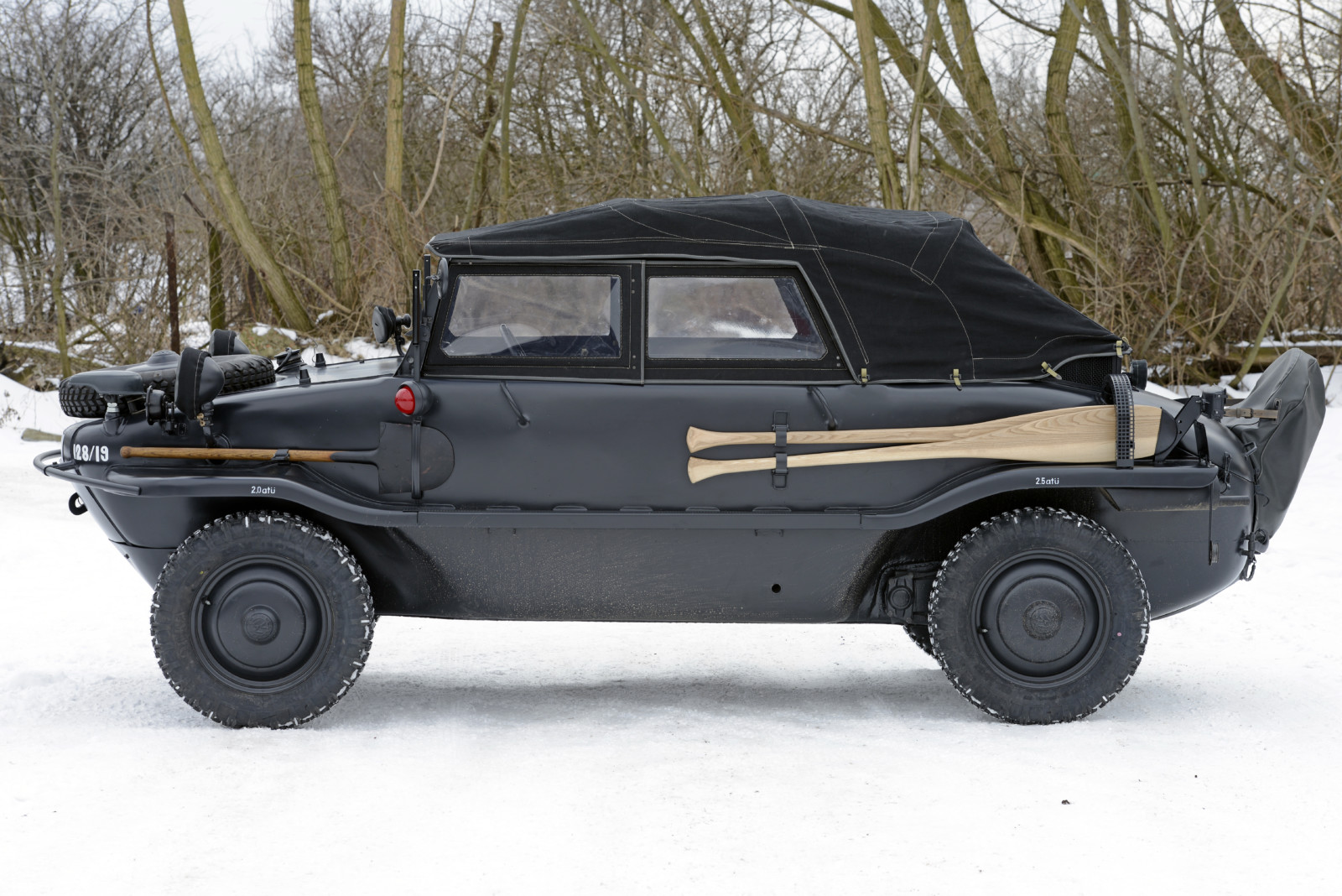Auto o numerze 128/19 w kolorze Feld Grau jest w tym momencie najstarszym znanym Schwimmwagenem na świecie.
