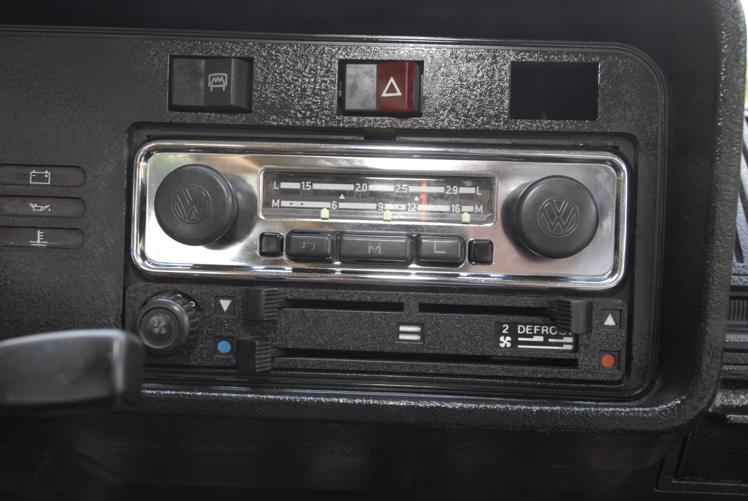 Wnętrze: tapicerka koloru brązowego ze złotą nitką zachowana w oryginale, drewniana kierownica MOMO z lat 70., radio Blaupunkt z lat 70., dodatkowe wskaźniki firmy VDO, pochromowany lewarek zmiany biegów i hamulca ręcznego, oryginalna gałka zmiany biegów z VW Golfa mk1 GTI.