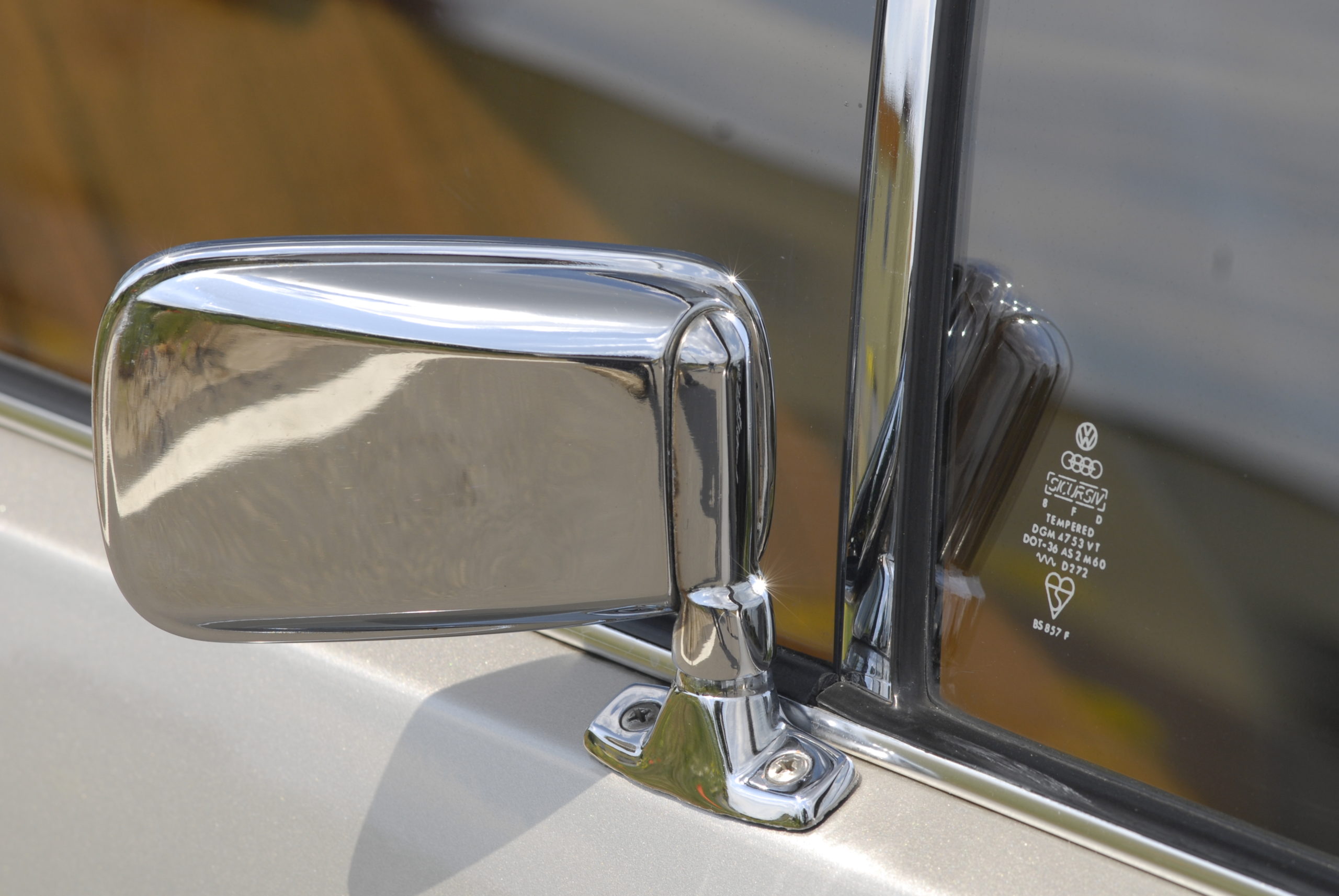 Ze złotym lakierem pięknie komponują się oryginalne chromowane zderzaki, lusterka, listwy boczne, ramki bocznych szyb, klamki oraz nowe listwy progowe. Nie oszczędzano i zakupiono wiele nowych elementów, między innymi uszczelki z kedrami oraz znaczki i emblematy.