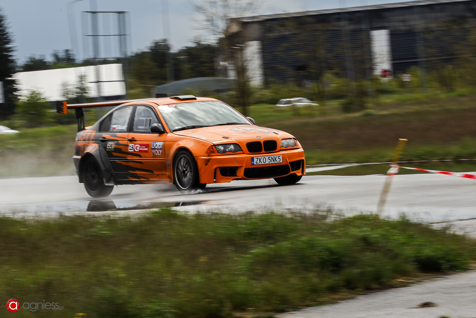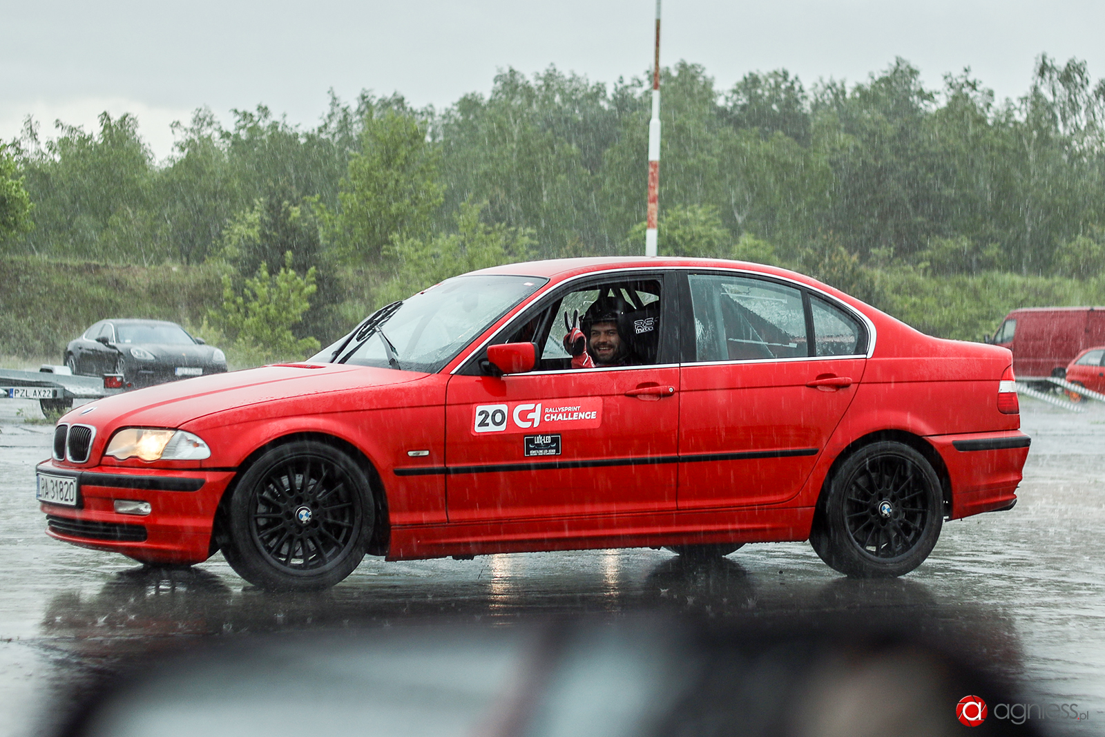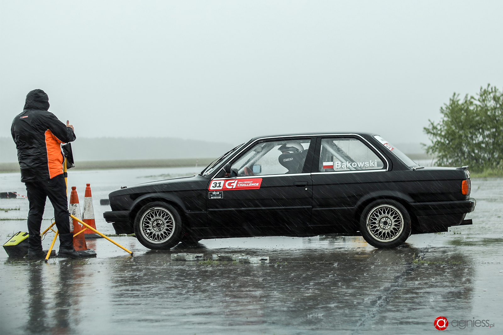 „Jeżdżąc w klasie pucharowej BMW Sport jesteśmy ograniczeni do jednej opony – Federal 595 RS-R. Przez to przyczepność w deszczu jest mocno zredukowana. O ile mokre warunki już zdarzały się wcześniej, nawet na poprzednich rundach, to w takiej burzy z ulewą jeszcze nigdy nie jeździłem. Auto silnie wyczulone na jakiekolwiek ruchy kierownicą czy naciśnięcia pedałów oraz głębokie kałuże, rozbryzgujące się ponad dach samochodu, solidnie dawały do myślenia. Zdecydowanie szybka jazda w takiej pogodzie wymagała nie tylko umiejętności i refleksu, ale i sporej odwagi. Późniejsza analiza onboard-ów pokazała mi z czym miałem największe trudności i gdzie mógłbym zyskać więcej czasu przy tzw. „następnym razie”. Utrzymanie się na koniec dnia na drugiej pozycji jest dla mnie dużym sukcesem, ponieważ brak doświadczenia i błędy wynikające z nieznajomości takich warunków dość mocno ograniczały moją konkurencyjność. Na pewno była to ciekawa lekcja na przyszłość!”