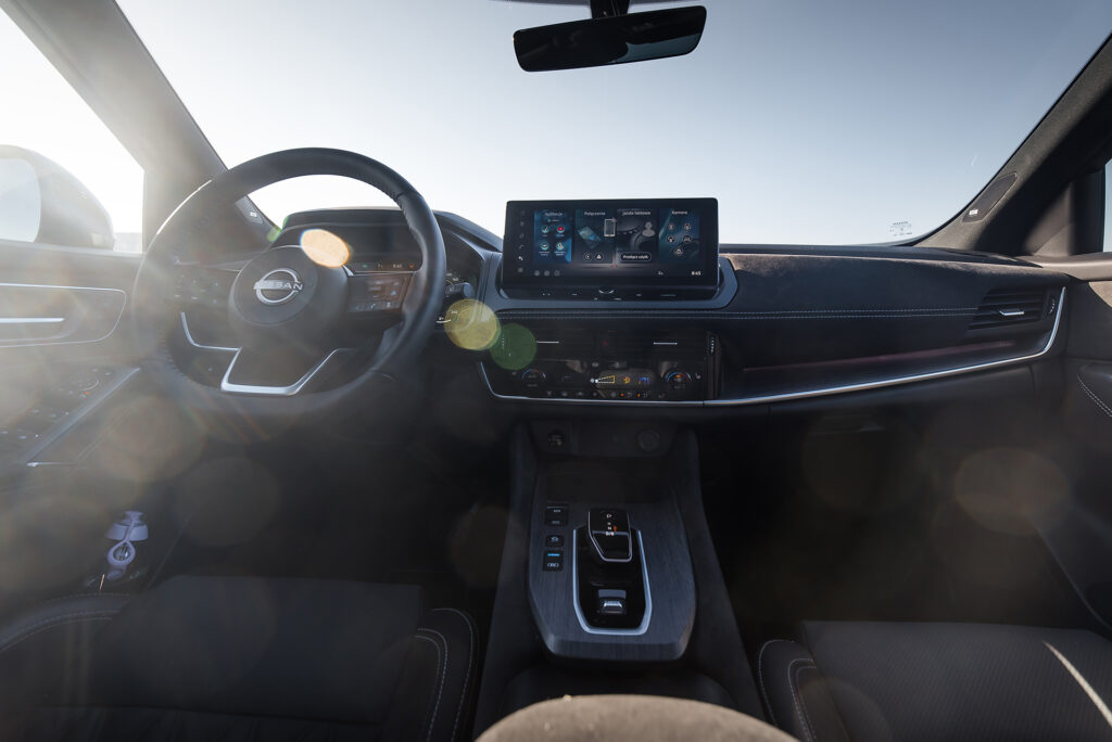 Wnętrze? Niby nuda, niby oczywiste rzeczy, ale np. jest alcantara. Na desce, na boczkach drzwi, na tunelu środkowym. Jak w GT3 RS! Całość wygląda naprawdę dobrze, ale… nie pasuje do nudnego SUV-a. Na dodatek, fajnie się to auto obsługuje. Jest oddzielny panel klimatyzacji z pokrętłami i guzikami, są wirtualne zegary, które dobrze udają zegary analogowe i ogólnie wszystko jest czytelne, duże, jakieś takie normalne. In plus są także multimedia. Japońskie samochody bardzo często posiadały systemy info-rozrywki pamiętające Czechosłowację. Wizualnie był blamaż. Jednak multimedia w nowym Qashqaiu stoją na Google`u i są po prostu świetne! Nic więcej nie będę dodawał.