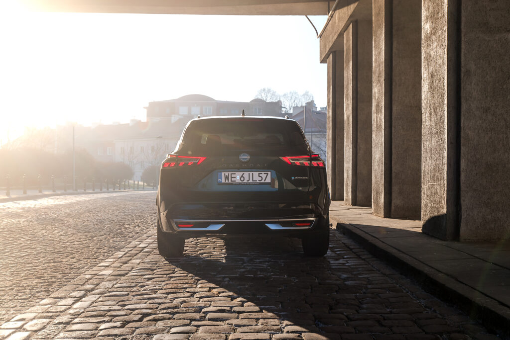 Co pod maską? Elektryk na benzynę! Tak, to nie żart, to nie tekst AI, która zbłądziła. Qashqai w wersji e-Power jest napędzany przez 190-konny silnik elektryczny, który to silnik dostaje „power” od silnika spalinowego. Spalinówka ma 158 KM, 1,5-litra pojemności i 3 cylindry. I teraz ważna uwaga. Mniej więcej w połowie 2025 roku Nissan pokazał nową generację napędu e-Power. Ta nowa generacja ma zupełnie nowy motor spalinowy pod maską (większe turbo, brak zmiennego stopnia sprężania itp.) o… takich samych parametrach. W teorii moc silnika elektrycznego się nie zmieniła, ale… jednak się zmieniła. 190 KM mamy w standardzie. W trybie Sport dostajemy 15 KM więcej. Jednak w żadnym trybie i za żadne pieniądze nie dostaniemy do tej wersji napędu AWD. Tylko FWD! I to jest tak naprawdę jedyny feler e-Power, bo cała reszta jest po prostu bardzo dopracowana!