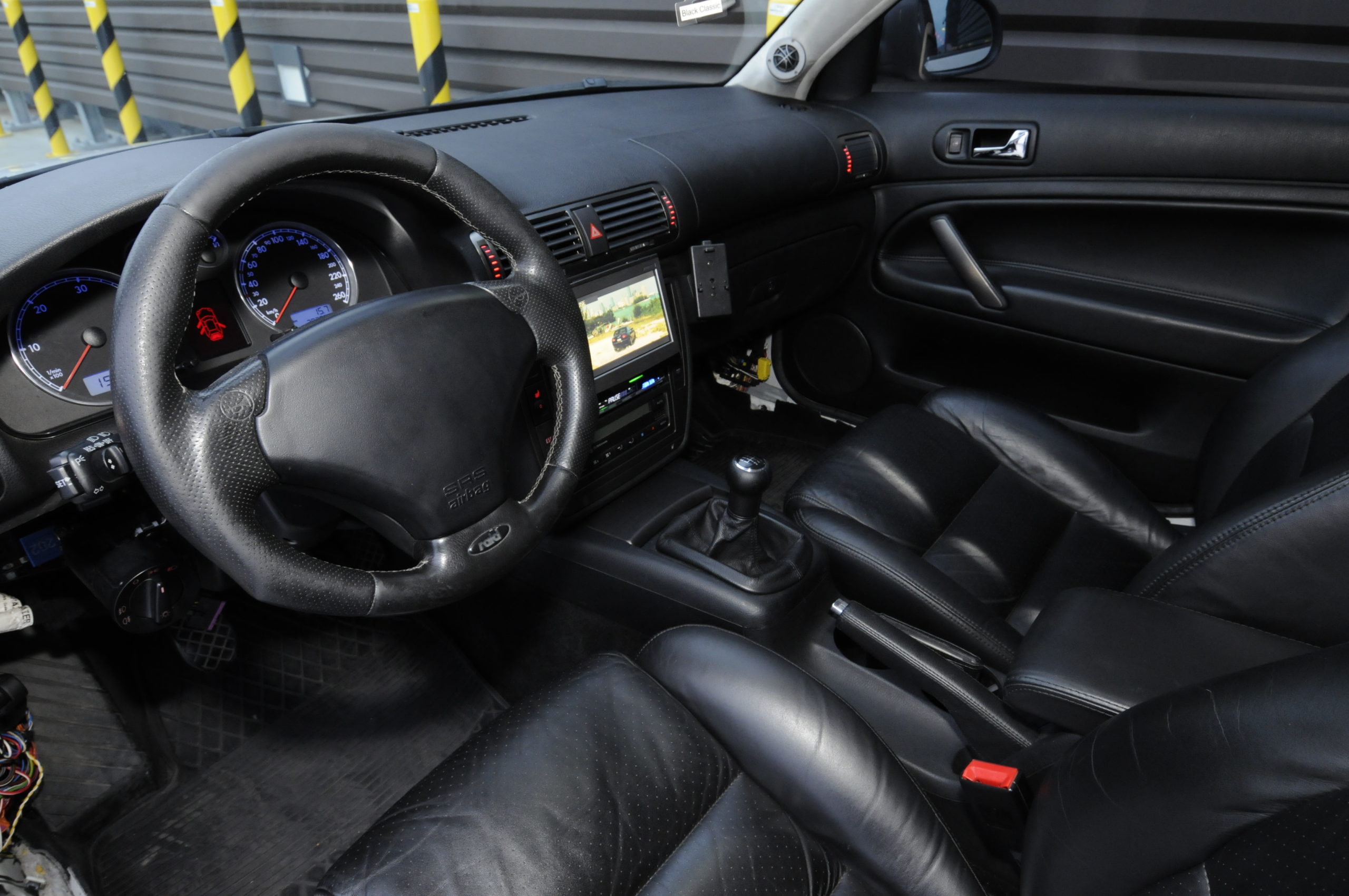 MODYFIKACJE WE WNĘTRZU: kierownica Raid Silberpfeil z air-bagiem, kratki nawiewów od Skody Superb, lampka od W8 z diodami, zegary z dużym FIS-em.