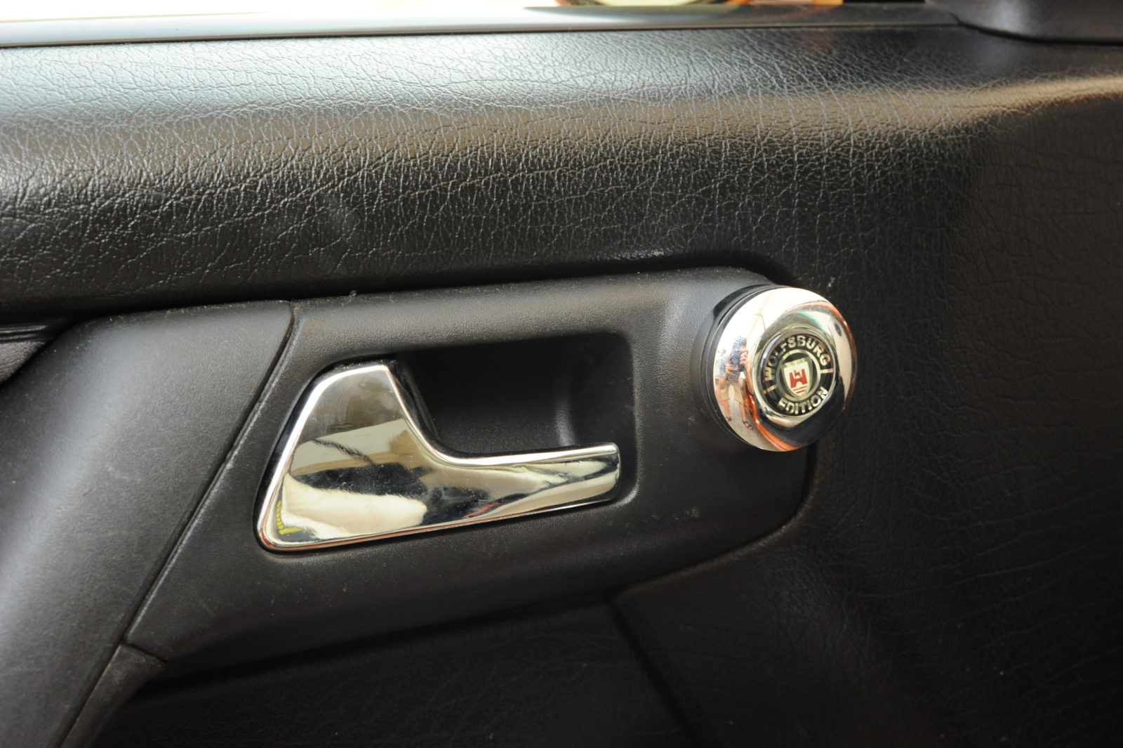 Mowa przede wszystkim o gałce zmiany biegów, rygielkach, dywanikach, korbkach czy pokrętłach do ustawiania lusterek firmy JOM z serii Wolfsburg Edition. Czarne materiały wykończeniowe i jasne fotele, kanapa i kokpit centralny pięknie się razem prezentują, kontrastując z nadwoziem, które poddano kuracji odmładzającej.