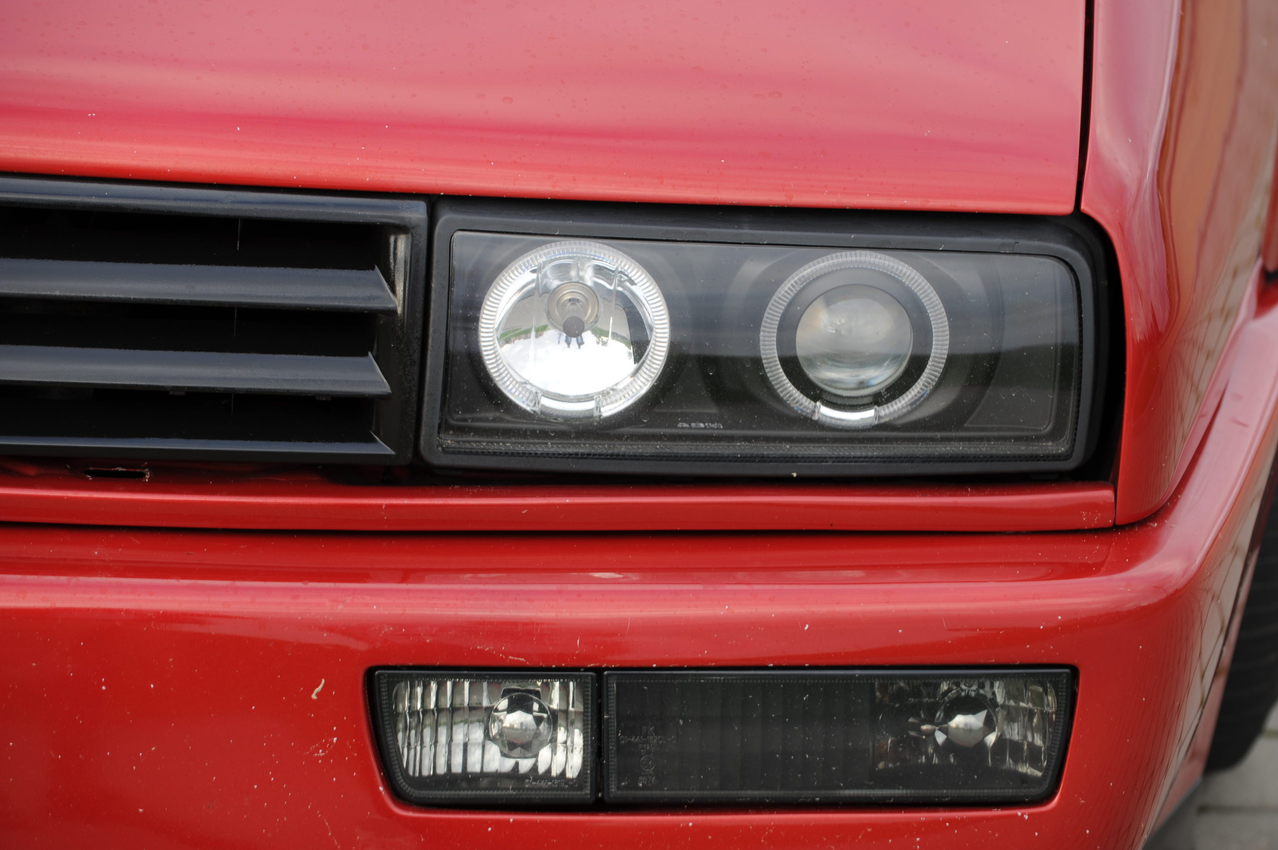 NADWOZIE: trzywarstwowy lakier z palety Chryslera, wygładzone zderzaki pozbawione wcięć i wnęk na tablice rejestracyjne, poszerzone nadkola, usunięte oznaczenia i listwy boczne, szeroka dokładka pod zderzakiem, przednie lampy soczewkowe ABT, grill FK pozbawiony znaczka VW, klosze tylnych lamp i boczne kierunkowskazy z Golfa III w stylu clear.