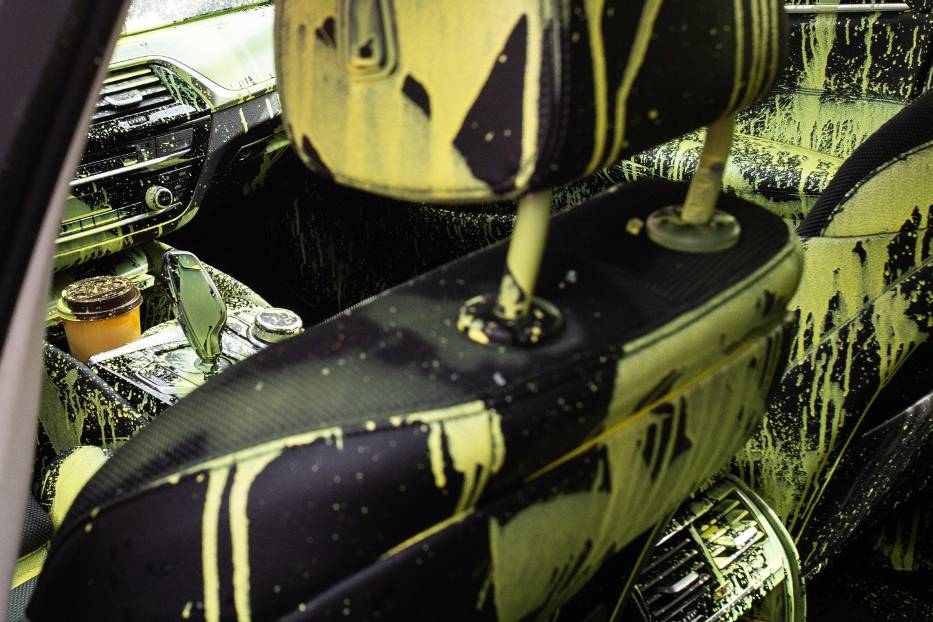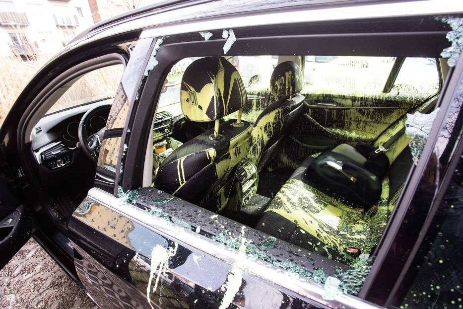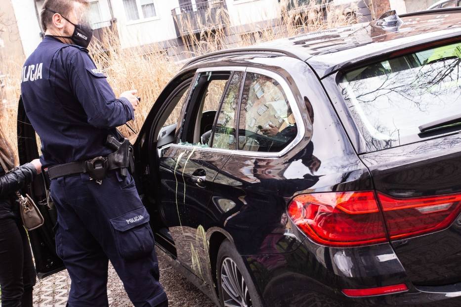 Na jednym z podwórek na wrocławskim Nadodrzu Policja zastała taki widok… Ktoś zbił szybę i rozlał jaskrawą farbę po całym wnętrzu rodzinnego kombi marki BMW…