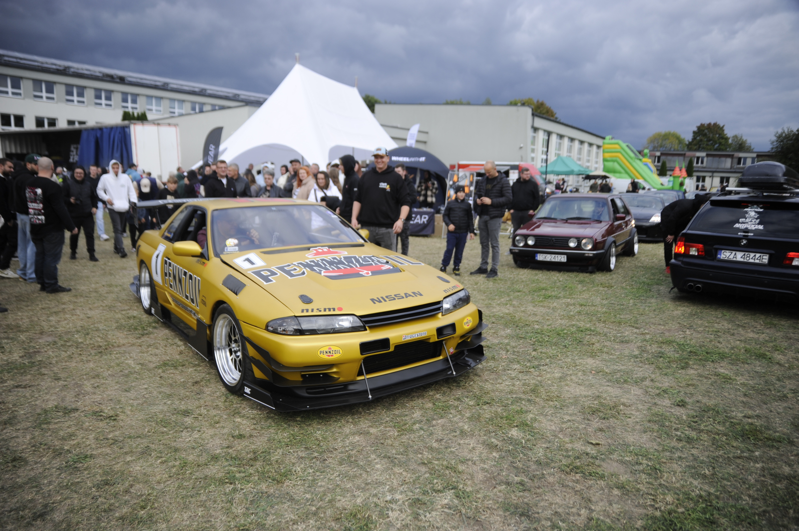Stojące niedaleko od wejścia Corrado G60 Rieger oraz garbusy jednego z organizatorów, Kuby Cieślaka to widok, który nigdy się nie znudzi. Dwie epoki niemieckiej motoryzacji, elegancko otoczonej japońską, reprezentowaną m.in. przez niesamowitą klasyczną Toyotę Carinę. Jeśli do „aut na przywitanie” doliczymy też te, które stały zaraz obok alejki, uzyskamy dopełnienie trzech tradycji, którymi jako TRENDS mieliśmy przyjemność zajmować się najdłużej. Do volkswagenowskiej i japońskiej dołączymy tę związaną z BMW, reprezentowana m.in. przez kapitalne E30 z silnikiem S38B38 („338i”). Innym ciekawe widokiem dla fanów monachijskiego producenta mogły być dwie klasyczne piątki umieszczone w głębi zlotowego terenu.