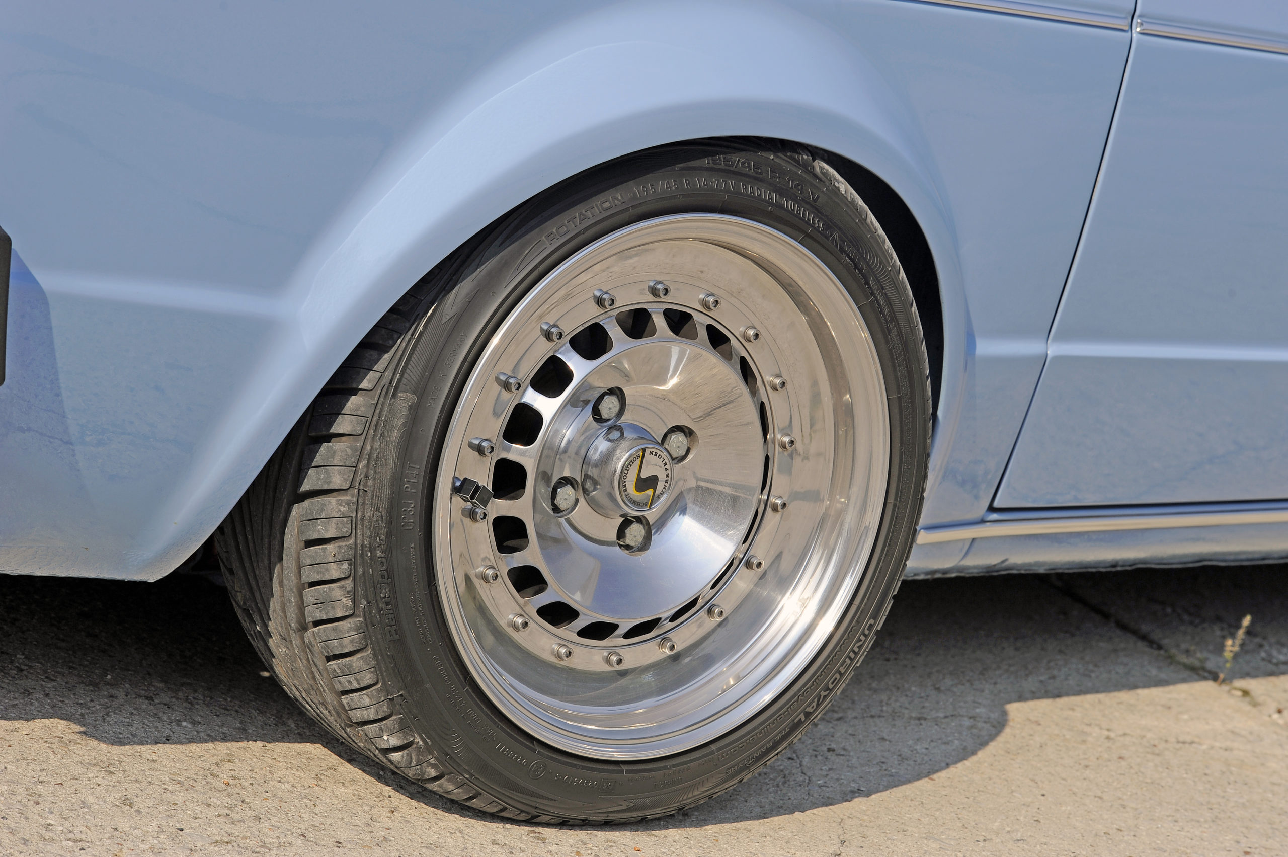 Przednie lampy wyposażono w ksenonowe żarniki, tylne mają biało-czerwone klosze zakupione w RPA. Ciekawostką jest założono na maskę bra, czyli skórzana nakładka, mająca chronić lakier przed uderzeniami kamieni podczas jazdy w trasie. W tym przypadku spełnia wyłącznie zadanie stylizacyjne. Caddy porusza się majestatycznie na felgach TH Line w rozmiarze 8×14 (bardzo szeroko).