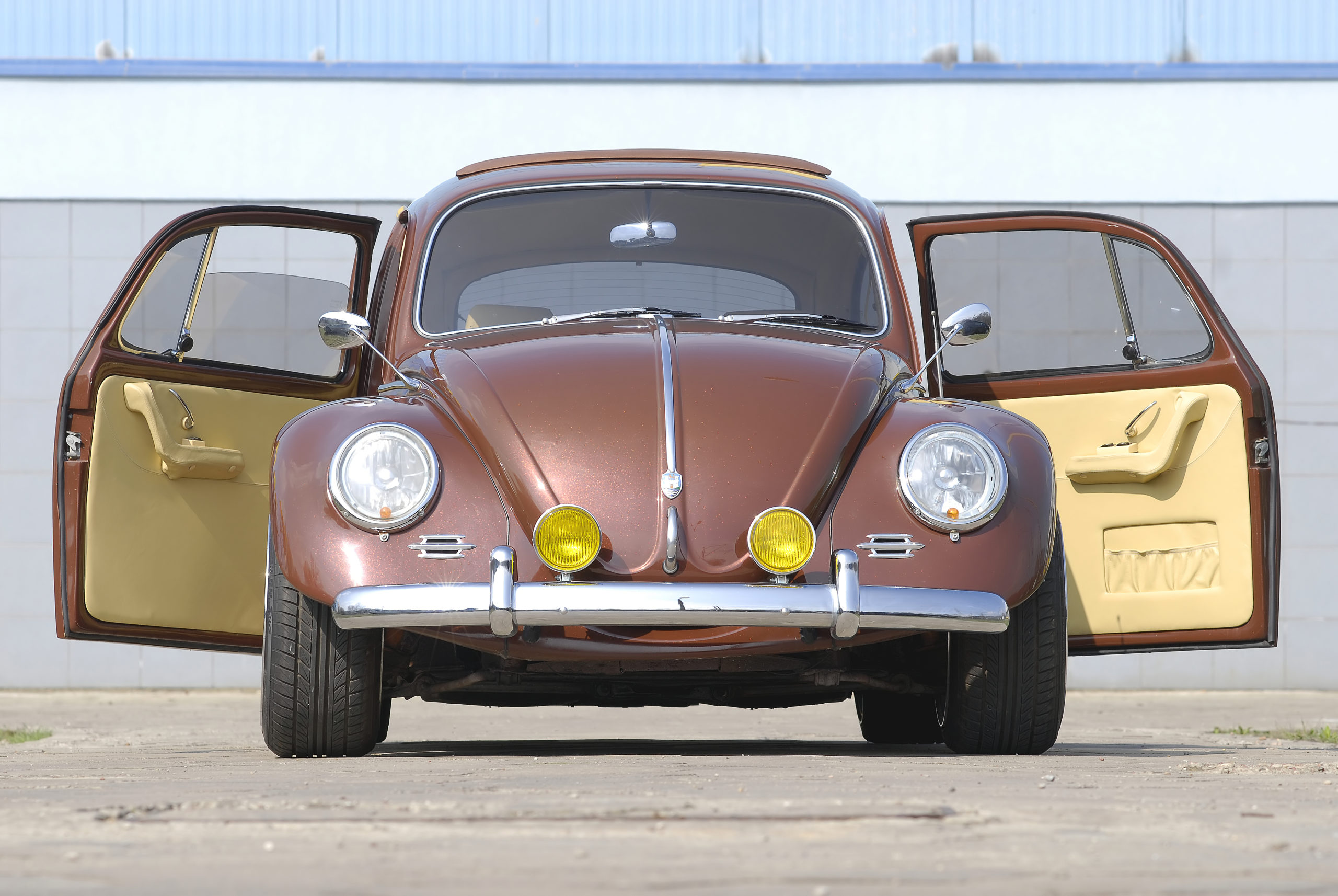 Ponieważ kolor lakieru Garbusa Customa jest efektem dodawania do brązowej farby – metodą prób i błędów –czerwonej i oliwkowej. Po uzyskaniu satysfakcjonującej barwy lakiernicy nałożyli cztery warstwy perłowego lakieru z palety „jedyny w swoim rodzaju”. W pełnej zgodności kolorystycznej wykonane zostało nowe materiałowe obicie dla odsuwanego dachu (tzw. faltdachu), którego cała konstrukcja, czyli ramka, szyny i mechanizm z rolkami, została przeszczepiona z Garbusa sprzed 1967 roku.