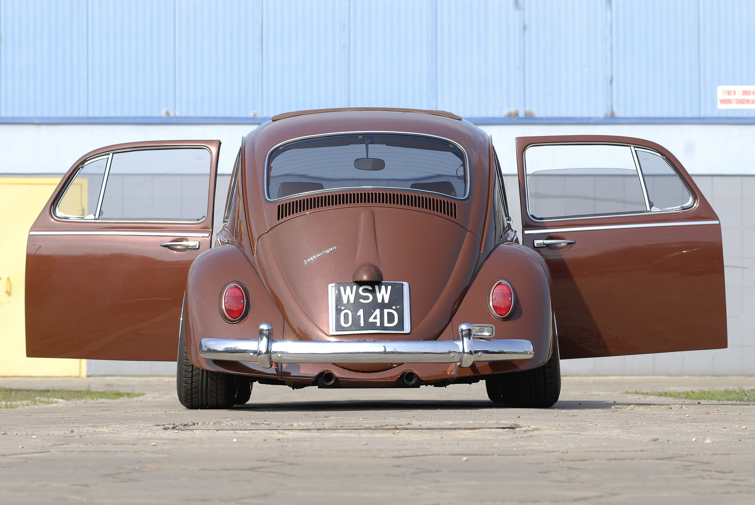 NADWOZIE: fabrycznie model 1302; modyfikacje z użyciem części modelu wyprodukowanego przed rokiem 1967, znacznie poszerzone błotniki, maska wykonana na zamówienie, kolor lakieru stworzony indywidualnie, dodatki chromowane, zamontowany materiałowy odsuwany dach.