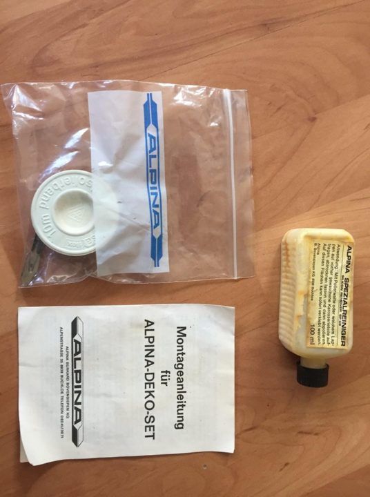 Z pewnością o tym zestawie naklejek ALPINA można powiedzieć, że to rarytas. Pasują one do samochodu typoszeregu E12 i pochodzą z przełomu lat 70-tych i 80-tych. Pudełko skrywa nie tylko naklejki, ale również instrukcję i akcesoria do montażu. I choć dziś te dekoracje nie są zdatne do użytku, to wciąż jest to bardzo ciekawy artefakt dla kogoś, kto kocha produkty manufaktury z Buchloe.