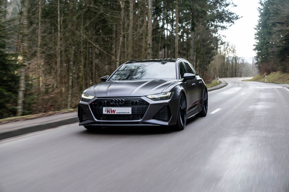 KW Automotive, producent zawieszeń, opracował sprężyny o regulowanej wysokości. Za pomocą tych sprężyn łatwo jest obniżyć auto w zakresie 5–30 milimetrów. Liniowo- progresywny design sprężyn KW o regulowanej wysokości (KW HAS) poprawia sportowy komfort i dynamikę jazdy Audi RS6 (C8, Typ F2), a także współpracują z każdym trybem tłumienia adaptacyjnego zawieszenia sportowego Audi RS plus (DRK).