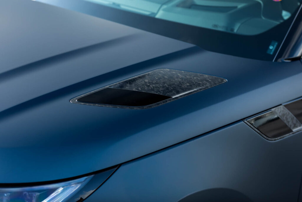 Chociaż wybór padł na połyskliwą czerń, na życzenie dostępne są również inne, niestandardowe wykończenia. MANHART uszlachetnił nadwozie, które już wcześniej przyciągało uwagę różnymi kutymi elementami z włókna węglowego, typowym zestawem kalkomanii. Składa się on z błyszczących czarnych pasów dekoracyjnych po bokach brytyjskiego, potężnego SUV-a.