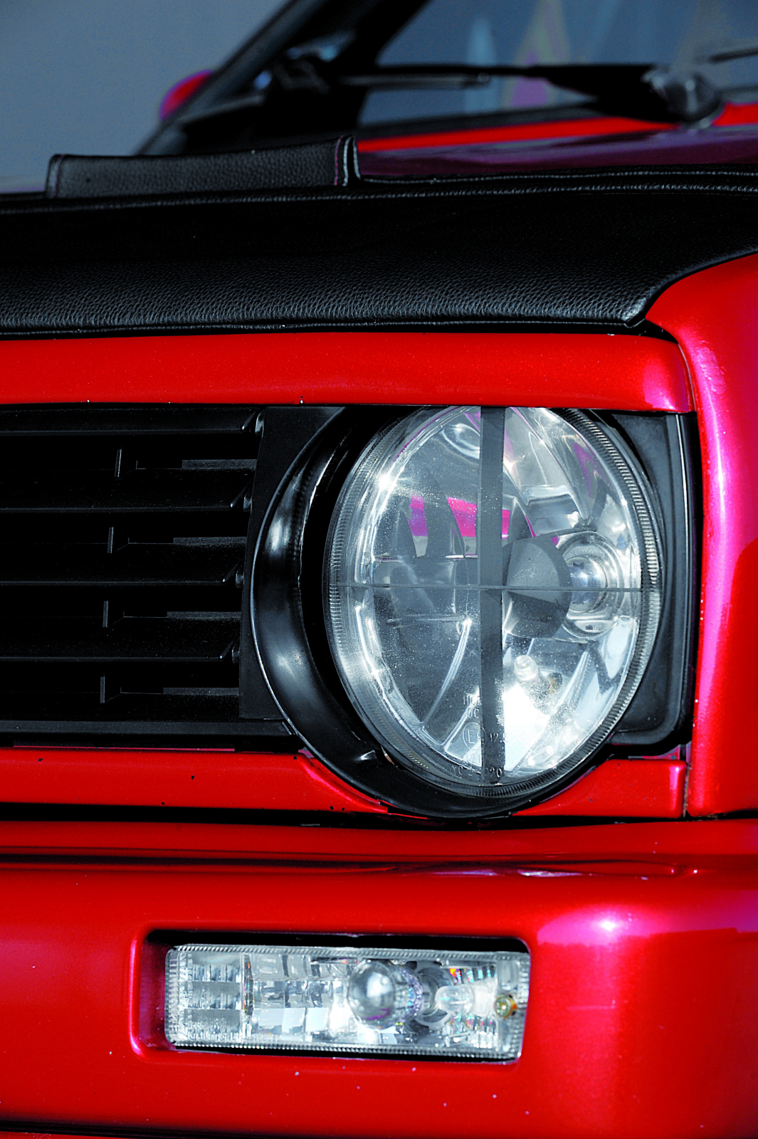 STYLIZACJA: lakier z palety Mitsubishi, tylne lampy cleary, przód cleary z krzyżami i kierunkowskazy z postojem, przednia brewka oraz czarne bra na masce obszyte czerwoną nicią, szeroki hokej GTI, na błotnikach emblemat Wolfsburg Edition, grill bez znaczka