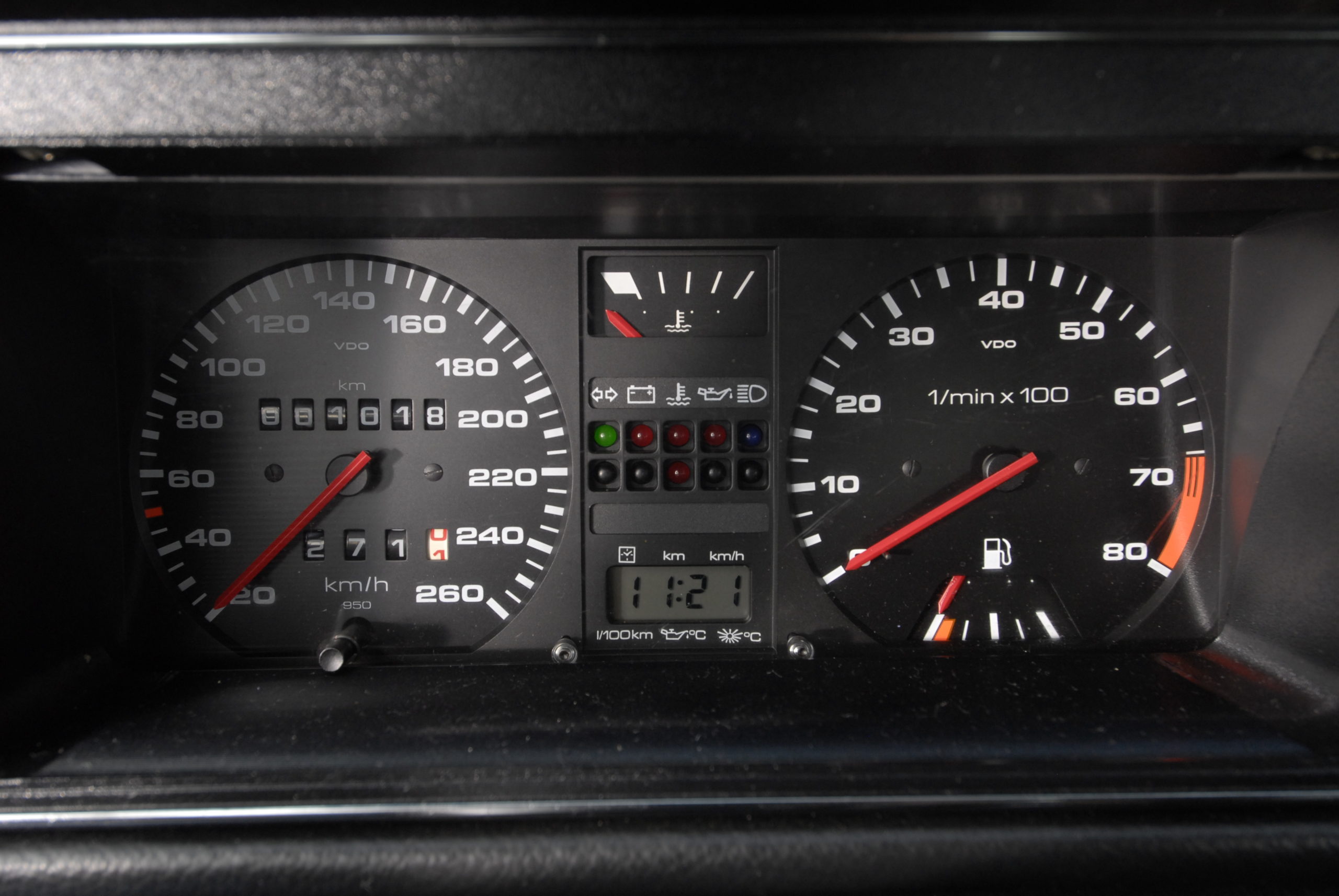 Wnętrze: oryginalne z VW Golfa I 1983 + fotele i pasy Sparco, zegary z Golfa II 16V + dodatkowe wskaźniki VDO w konsoli środkowej, podsufitka z czarnej alcantary, oczyszczony tył, koło zapasowe – BBS RS, radio Blaupunkt z lat 70., dywaniki WE.