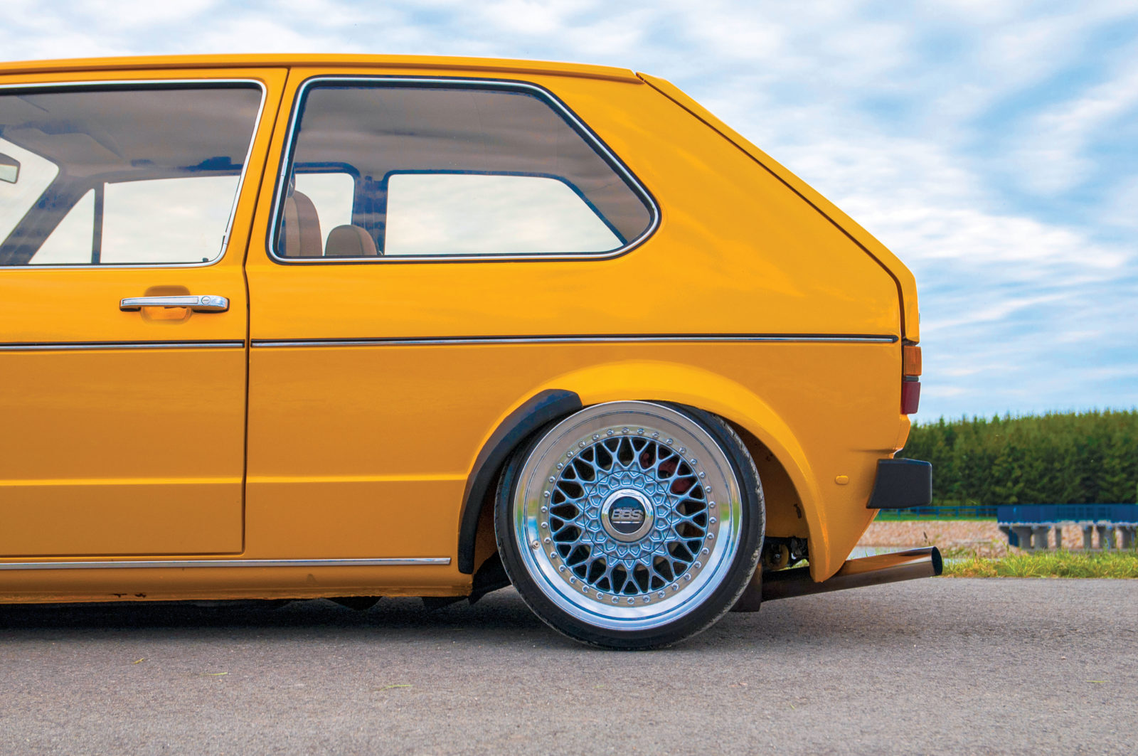 W tym roku zamontowano klasyczne szesnastocalowe felgi BBS RS. Koła mają szerokość 8 cali i opony 165/40/16. Rozmiar opon sprawia, że ranty felg wystają poza obrys auta, a nadwozie „kładzie” się na nich w momencie opuszczania.