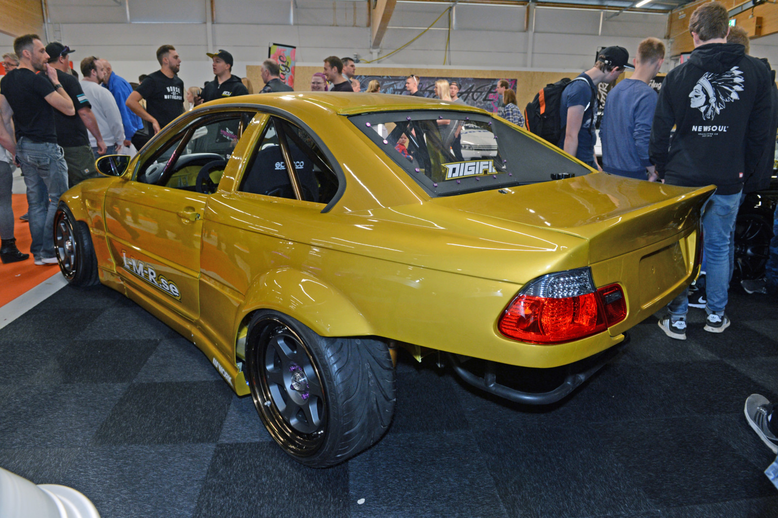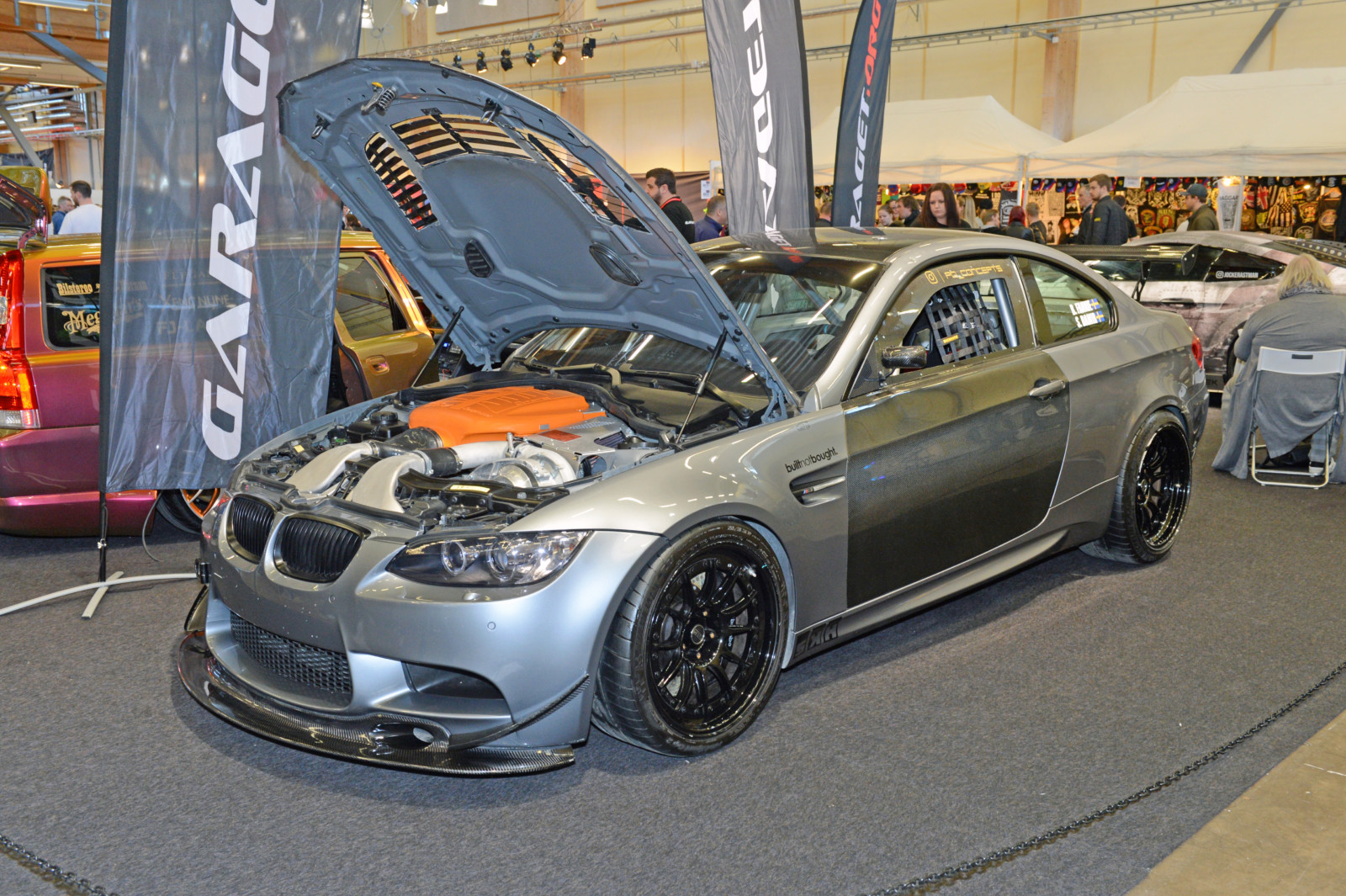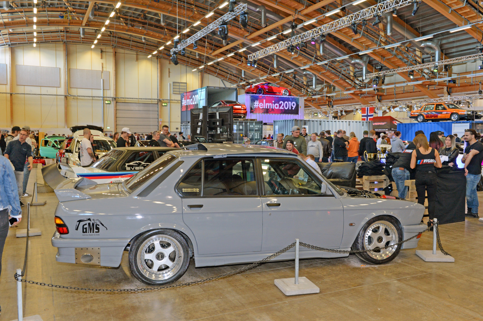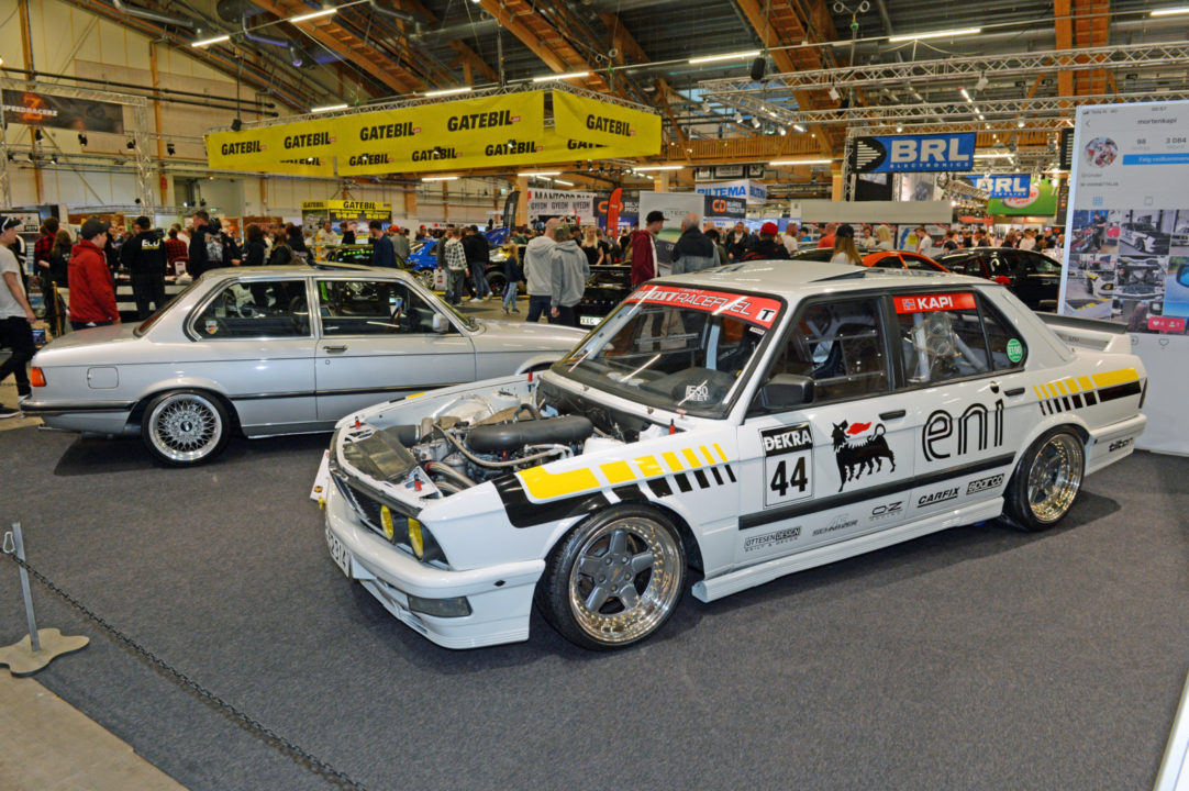 Jak co roku sporo działo się na scenie zaprezentowanych driftowozów. Białe BMW E30 Robina z silnikiem z E34 M5 podciągniętym na 621 KM oraz 951 Nm najlepiej prezentuje się na żywo na torze. Kilka metrów dalej w hali A kolejny amator driftingu – fioletowe BMW E30 z Norwegii z V8 pod maską. Tegoroczna statystyka obecności modelu E30 na metr kwadratowy była wyjątkowo wysoka. Ciekawy kontrast stanowiły dwie z nich: niebieska, poszerzona i przebudowana BMW E30 Fredrika Larssona z silnikiem od M5 V10, zablokowanymi vanosami, turbosprężarką DTA S100 GIK TURBO wysterowaną na 535 KM oraz 545 Nm a także białe E30 coupe z 1986 roku Hugo Ohlsson, z ładnymi felgami BBS, skręconym do granic limitu gwintem oraz wyczyszczona komorą silnika.