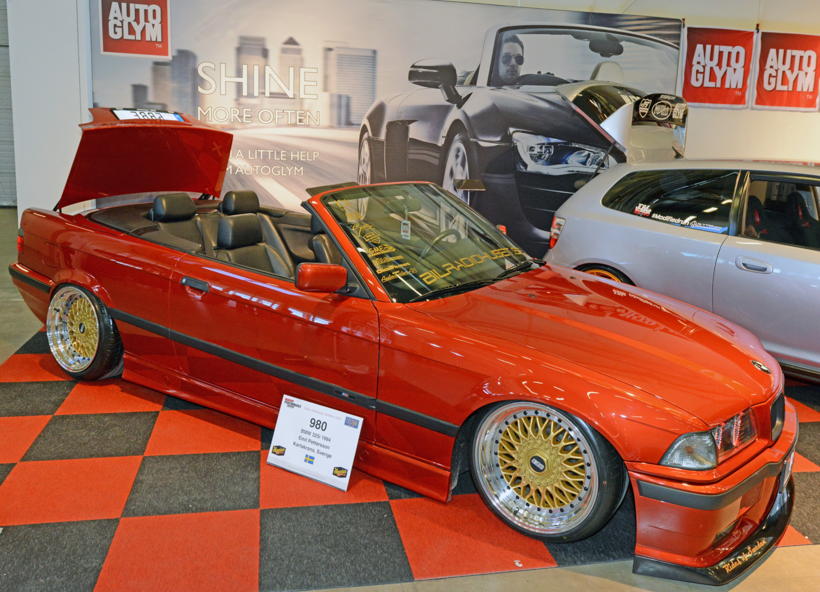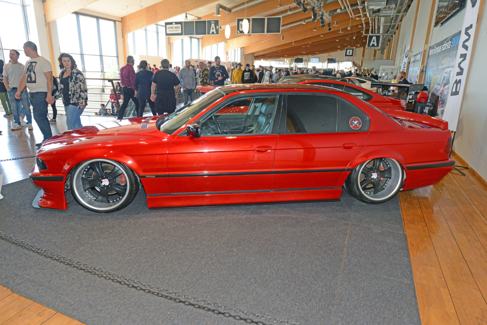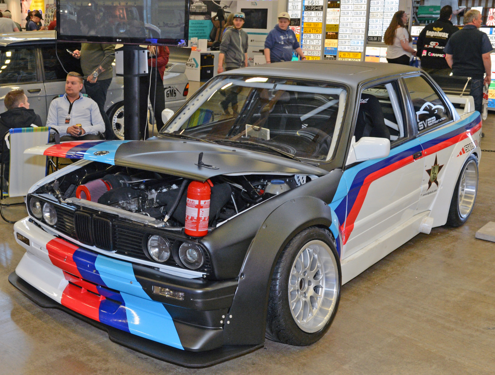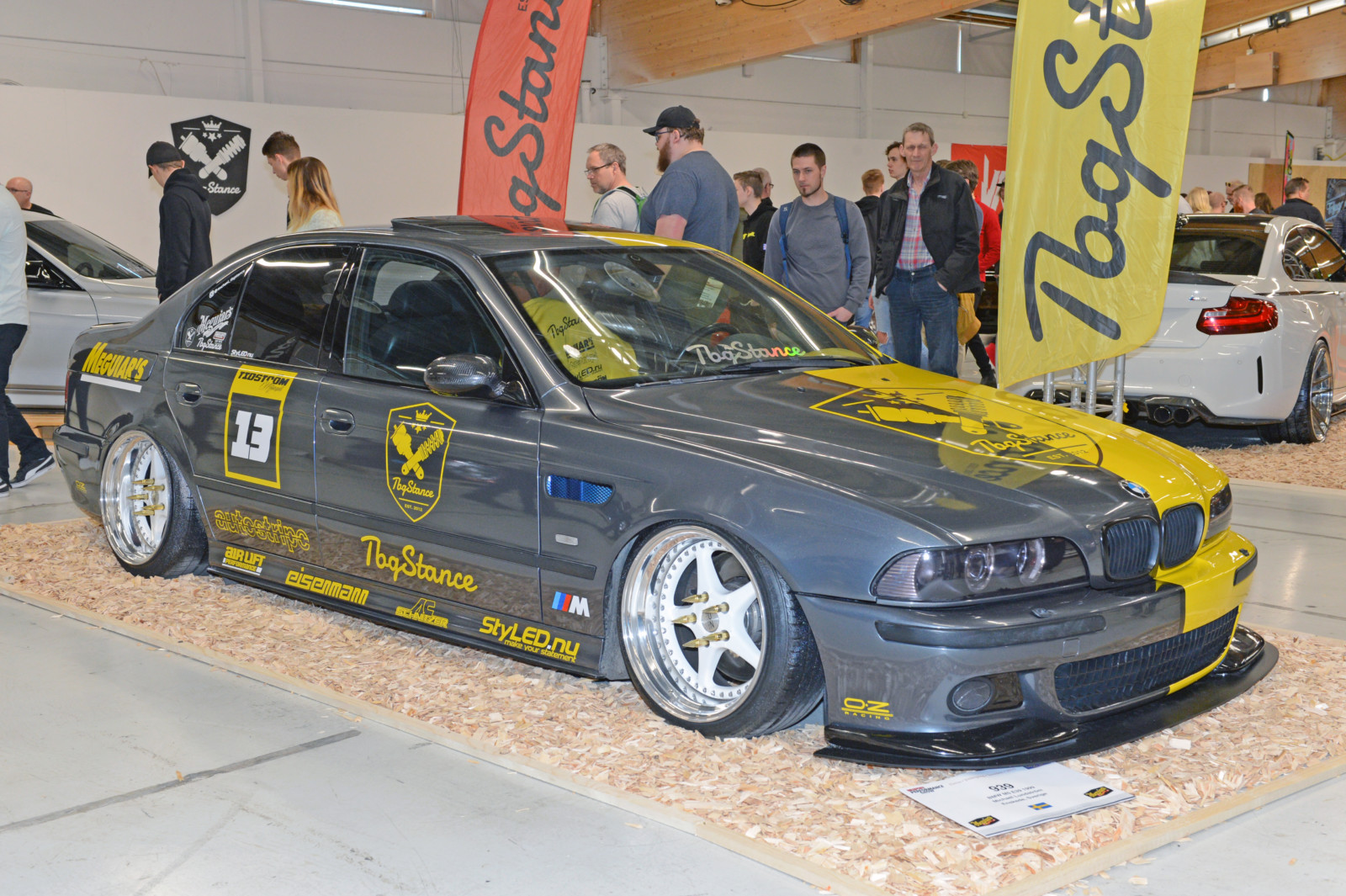 Jak co roku sporo działo się na scenie zaprezentowanych driftowozów. Białe BMW E30 Robina z silnikiem z E34 M5 podciągniętym na 621 KM oraz 951 Nm najlepiej prezentuje się na żywo na torze. Kilka metrów dalej w hali A kolejny amator driftingu – fioletowe BMW E30 z Norwegii z V8 pod maską. Tegoroczna statystyka obecności modelu E30 na metr kwadratowy była wyjątkowo wysoka. Ciekawy kontrast stanowiły dwie z nich: niebieska, poszerzona i przebudowana BMW E30 Fredrika Larssona z silnikiem od M5 V10, zablokowanymi vanosami, turbosprężarką DTA S100 GIK TURBO wysterowaną na 535 KM oraz 545 Nm a także białe E30 coupe z 1986 roku Hugo Ohlsson, z ładnymi felgami BBS, skręconym do granic limitu gwintem oraz wyczyszczona komorą silnika.