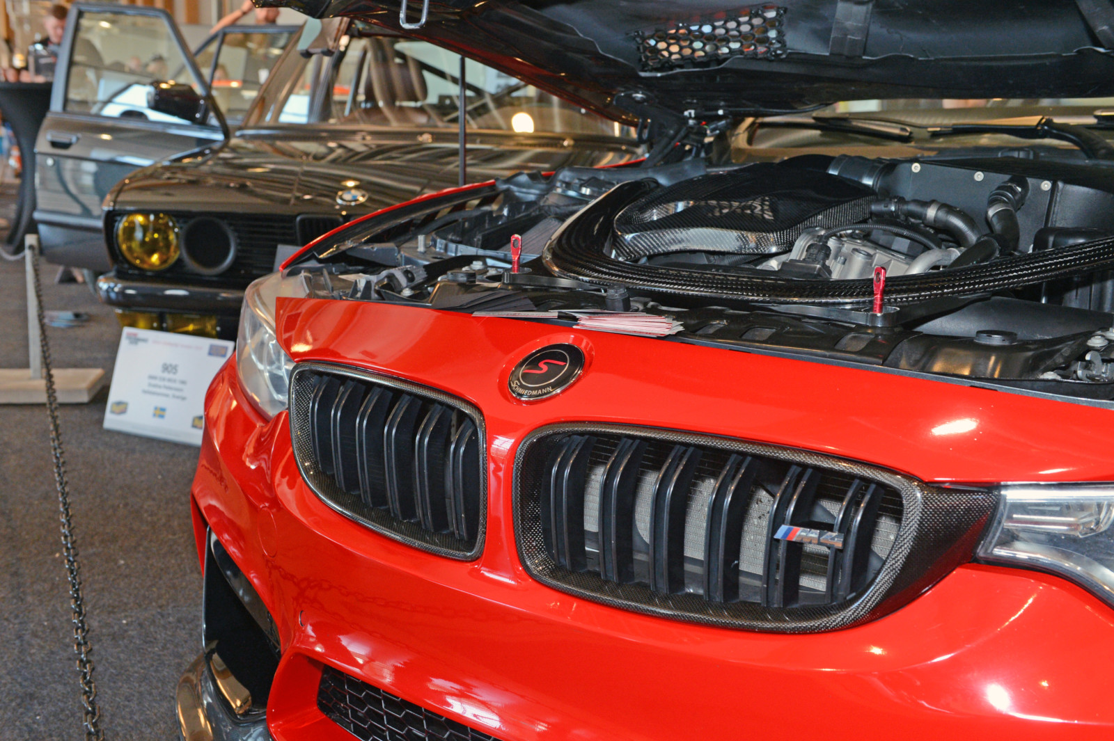 Dla fanów aktualnych i nowszych modeli BMW bardziej interesujące będą z pewnością auta typu BMW 235iX „The Hulk” (453 KM i 650 Nm ) będąca wizytówką firmy Stertmanmotorsport , czy też M4 od szwedzkiego Schmiedmanna w krwisto czerwonym kolorze z karbonowym dachem. Nawet miłośnicy rodzinnych wersji typu Touring mieli na czym zawiesić oko. Mojej uwadze nie mogły umknąć srebrne F31 z 2015 roku Tobiasa Friberga czy zaparkowane obok siebie fioletowe E34 oraz białe z czarnym dachem BMW 328 z 2015r.