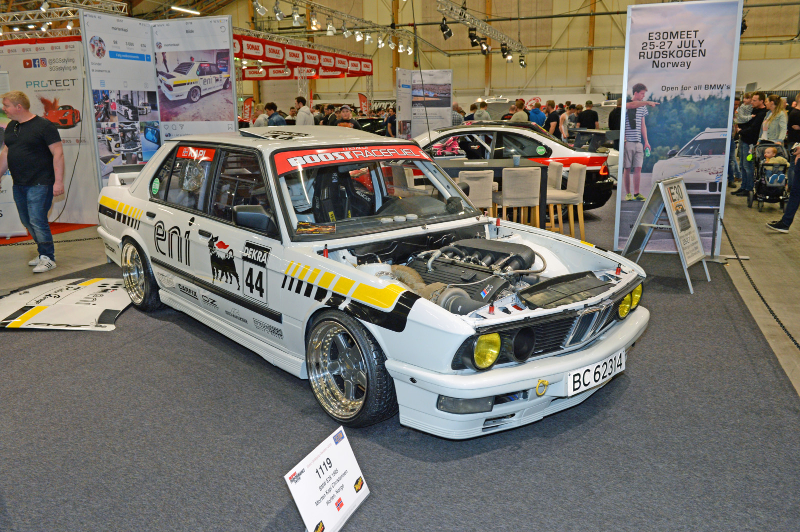 Bilsport Performance Show jest ciekawą imprezą ze względu na obecność auta z całej Skandynawii. Przykładem jest białe E28 z 1985 roku z numerem bocznym 44. Zmodyfikowane przez Mortena Kapi auto przygotowane zostało na tor wyścigowy. Piątka ma pod maską motor S54B32 (Z3 M/M3 E46), jednak tutaj w wersji ulepszonej o turbosprężarkę. Z kiedyś atmosferycznego silnika dzięki „dmuchawce” od Precision Turbo z motoru wykrzesano 800 KM oraz 900 Nm.