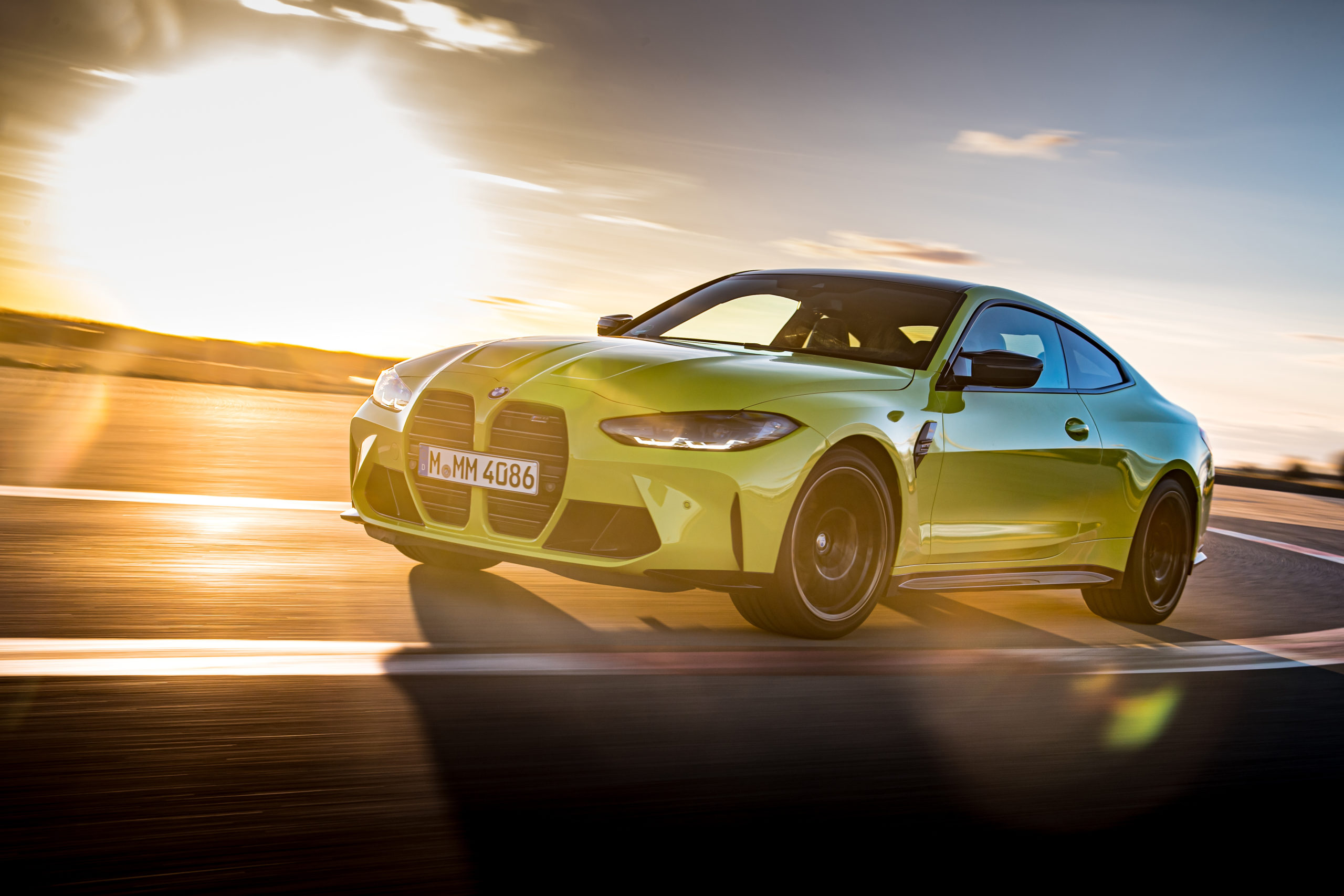 Wśród zdjęć znajdziemy 4 bolidy w różnych wariatnach kolorystycznych: BMW M4 Competition Coupé – Niebieski Portimao, BMW M4 Competition Coupé – Żółty Sao Paulo,BMW M3 Competition Limuzyna – Zielony Isle of Man oraz M3 Competition Limuzyna – Niebieski Portimao. Który podoba Wam się najbardziej?